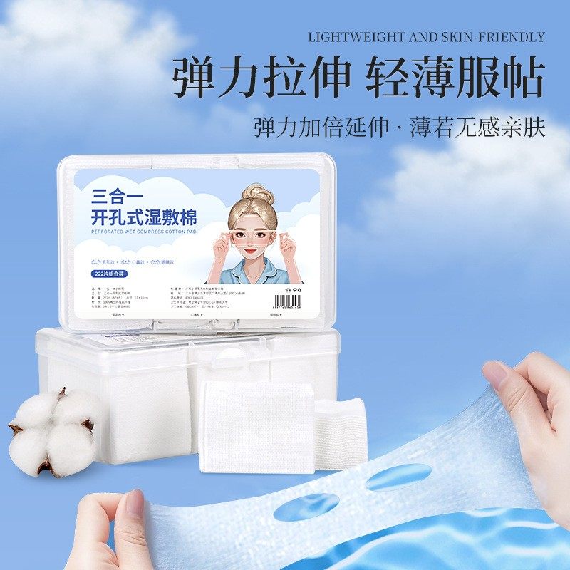 开孔湿敷棉敷脸眼部专用三合一可拉伸开口超薄蚕丝湿敷化妆卸妆棉
