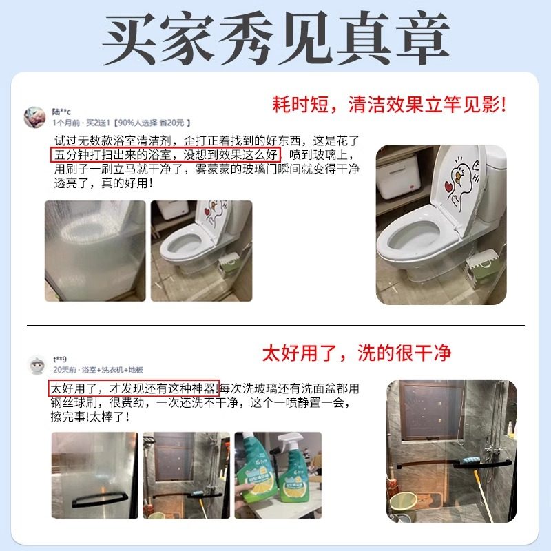 浴室清洁剂玻璃水龙头马桶除水垢厕所瓷砖淋浴房强力去污神器墙面