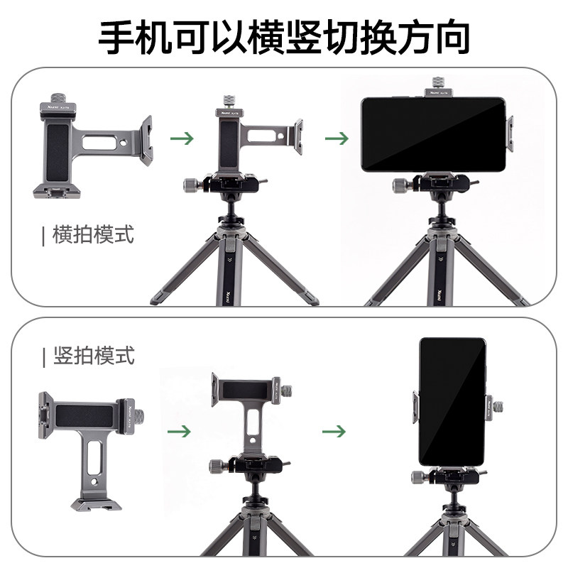 喜乐途金属手机夹横竖拍双冷靴拓展大号固定夹子摄影摄像桌面三脚架手机支架双向阿卡通用云台夹座配件铝合金