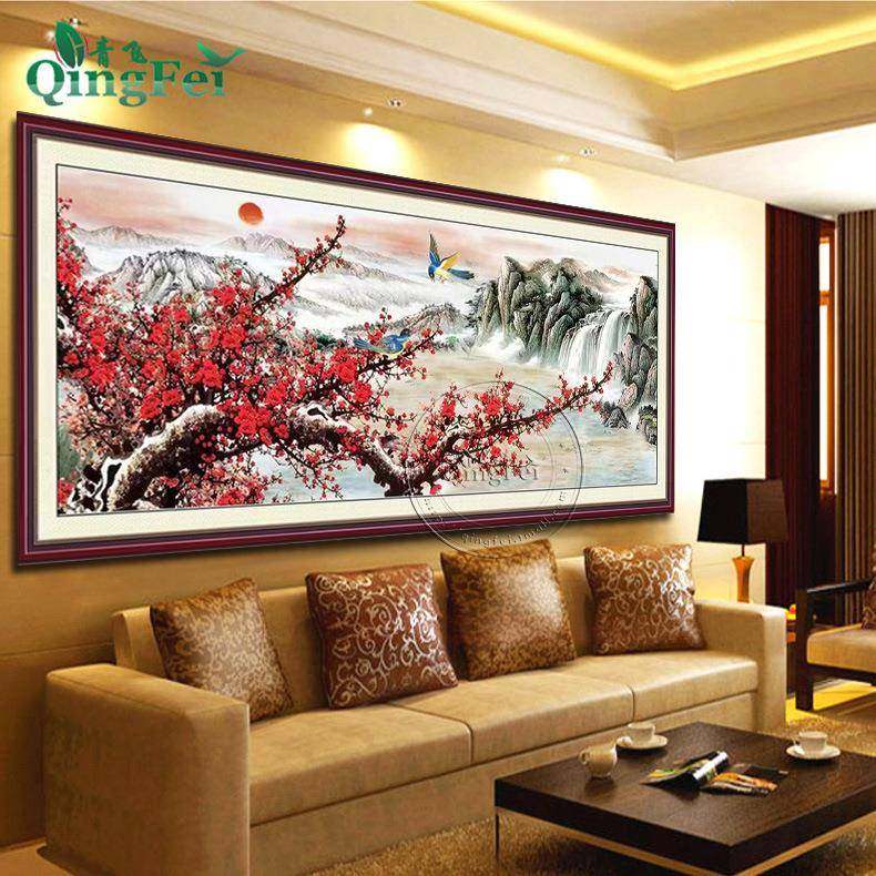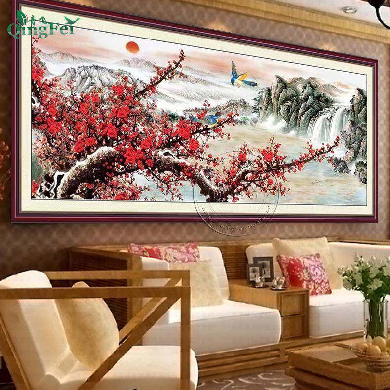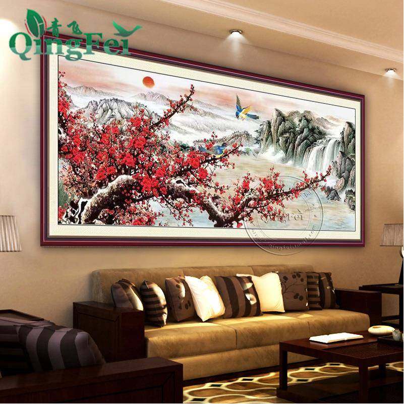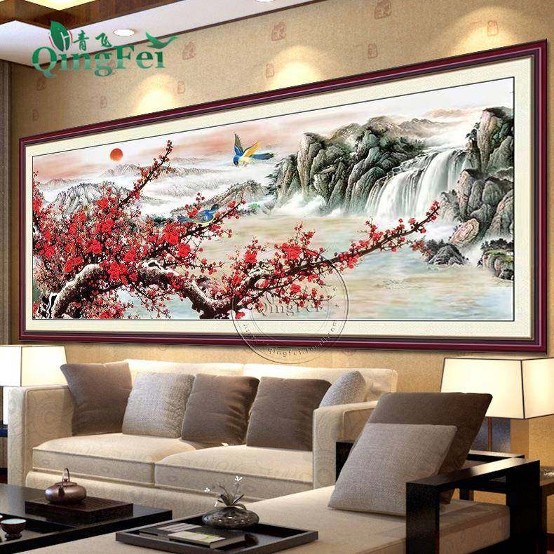 青飞精准印布报春图江山如画十字绣梅开五福现代中式客厅风景画