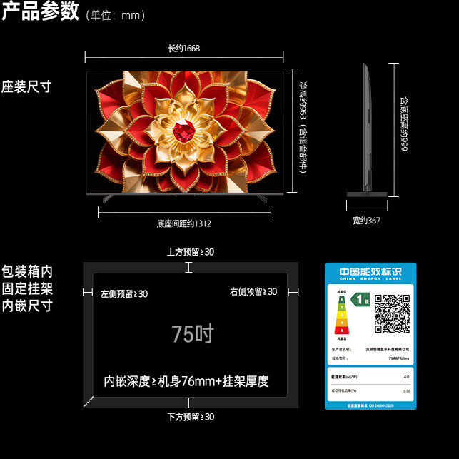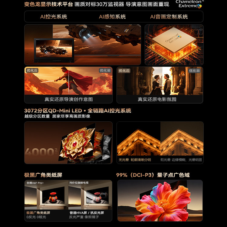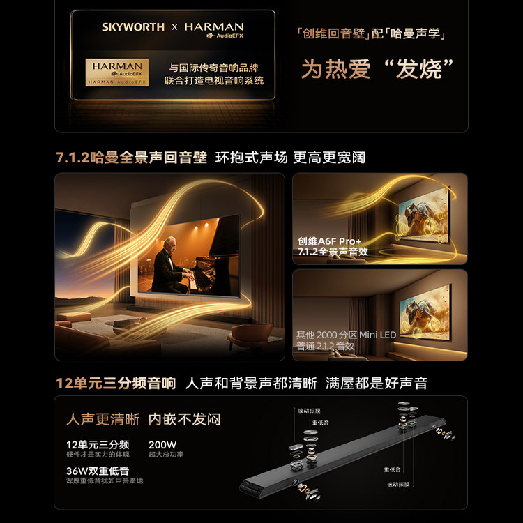 创维A6F Pro+ 75英寸Mini LED内置回音壁液晶电视机 焕新补贴 A6E