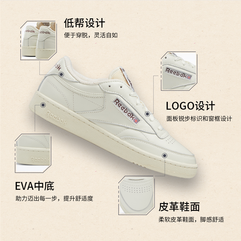 Reebok锐步官方男女款CLUB C 85 VINTAGE复古休闲小白鞋板鞋