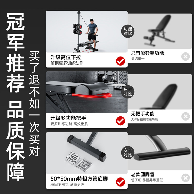 哑铃凳仰卧起坐辅助器男士家用健身器材多功能飞鸟商用杠铃卧推椅