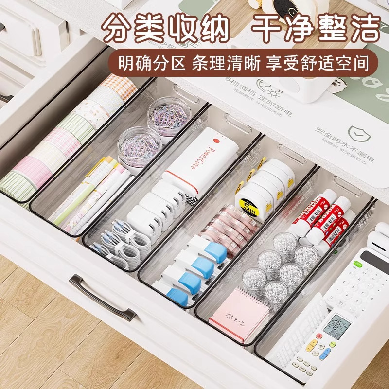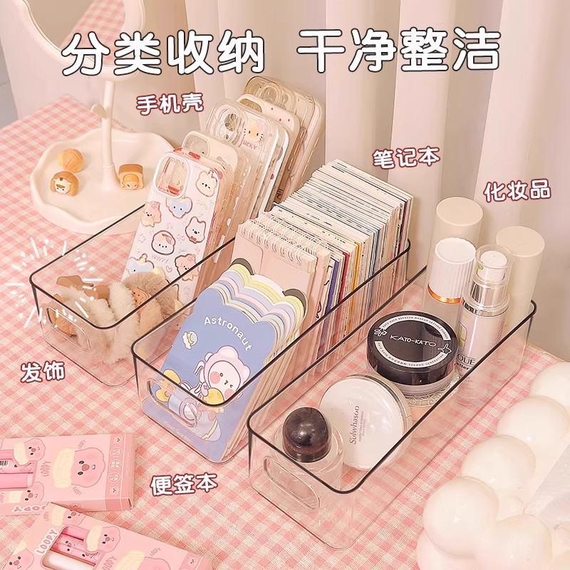 桌面宿舍收纳盒长条窄长型长方形亚克力透明杂物小物件抽屉分隔盒