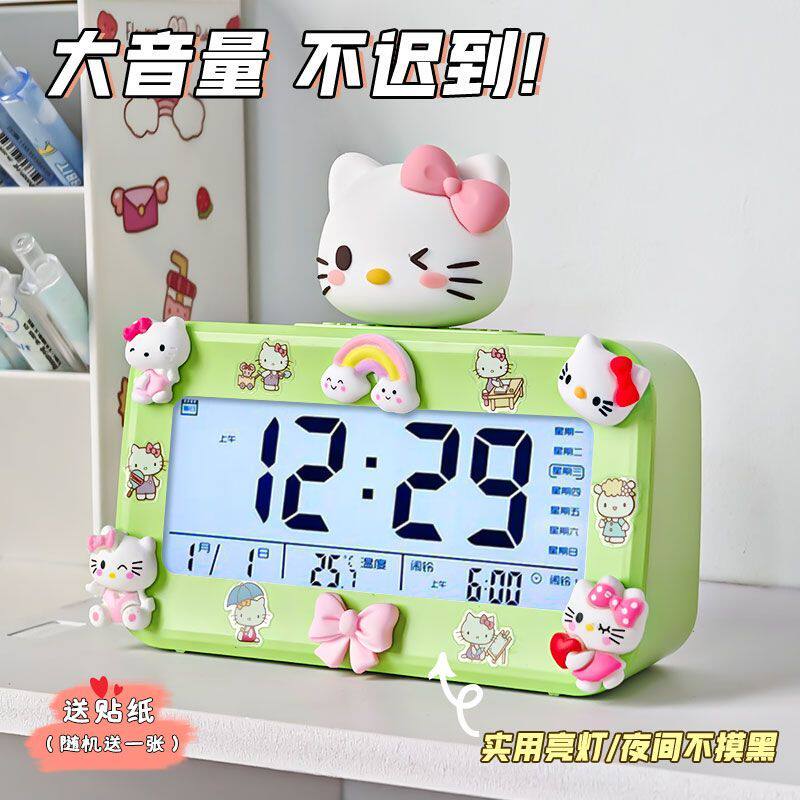 凯蒂猫桌面闹钟学生专用起床神器儿童台钟女生静音夜光充电款实用