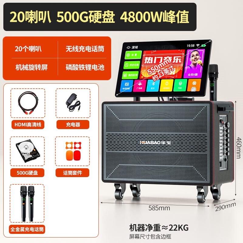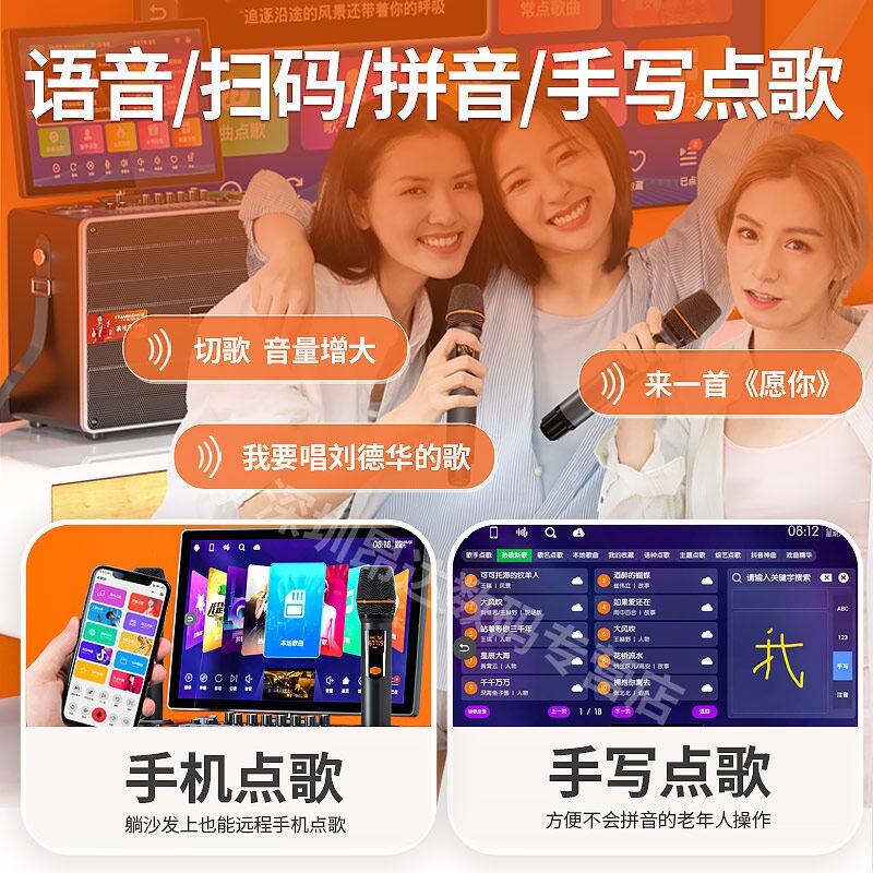 正品广场舞音响带显示屏户外唱k音箱点歌卡拉ok一体机家庭ktv套装