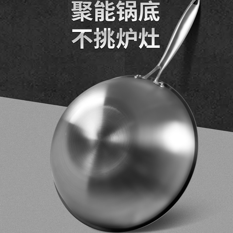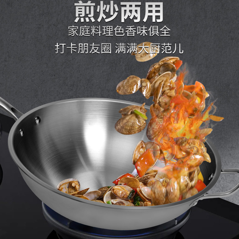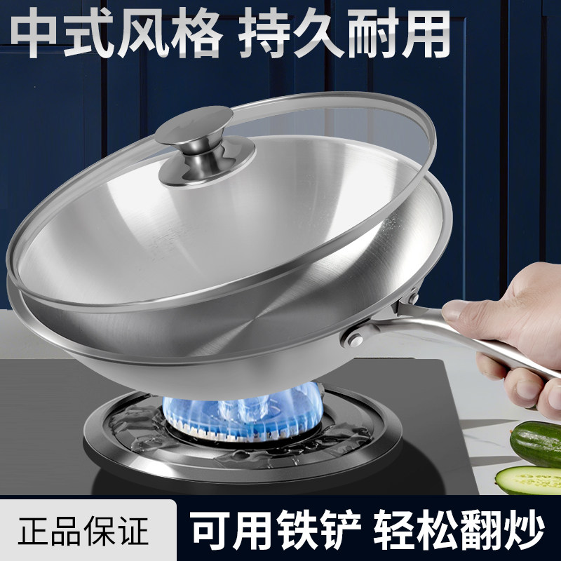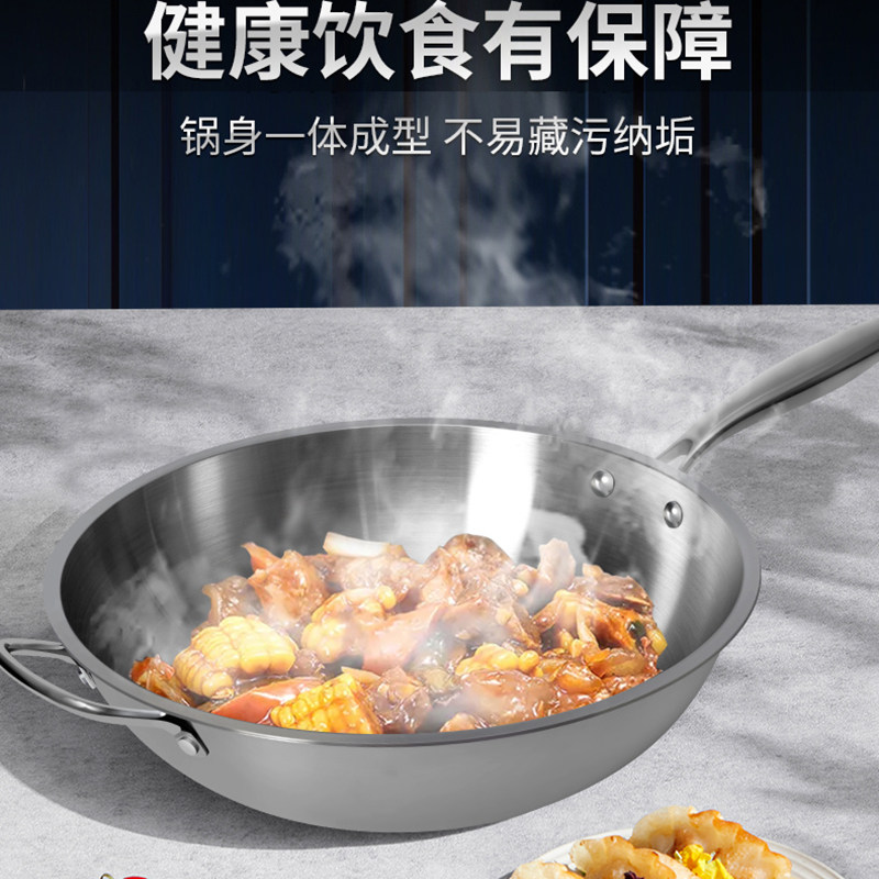 三四钢?不锈钢0涂层炒锅家用316L食品级加厚圆底炒菜锅官方正品