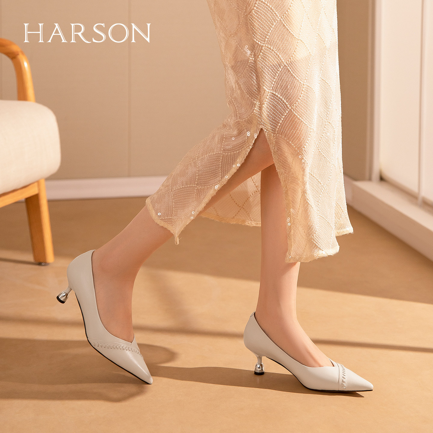 哈森真皮小羊皮尖头高跟鞋通勤百搭浅口单鞋女2026新款HWS260107