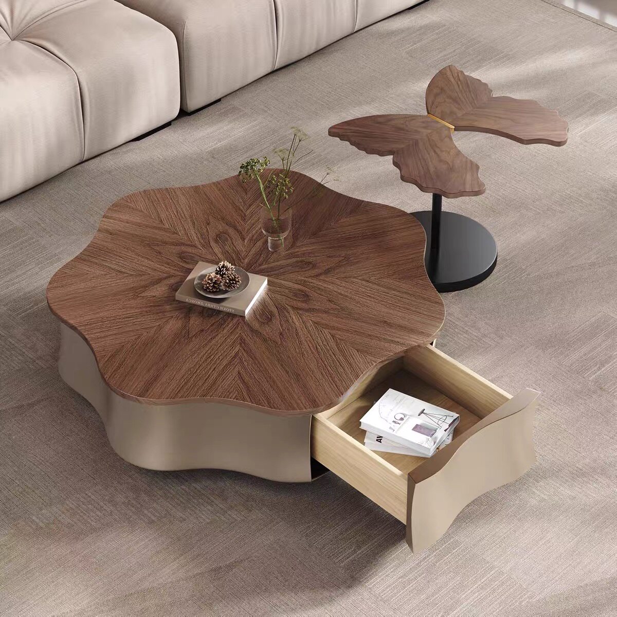 意式极简异形睡莲茶几客厅家用小众设计师款现代简约花瓣茶几组合