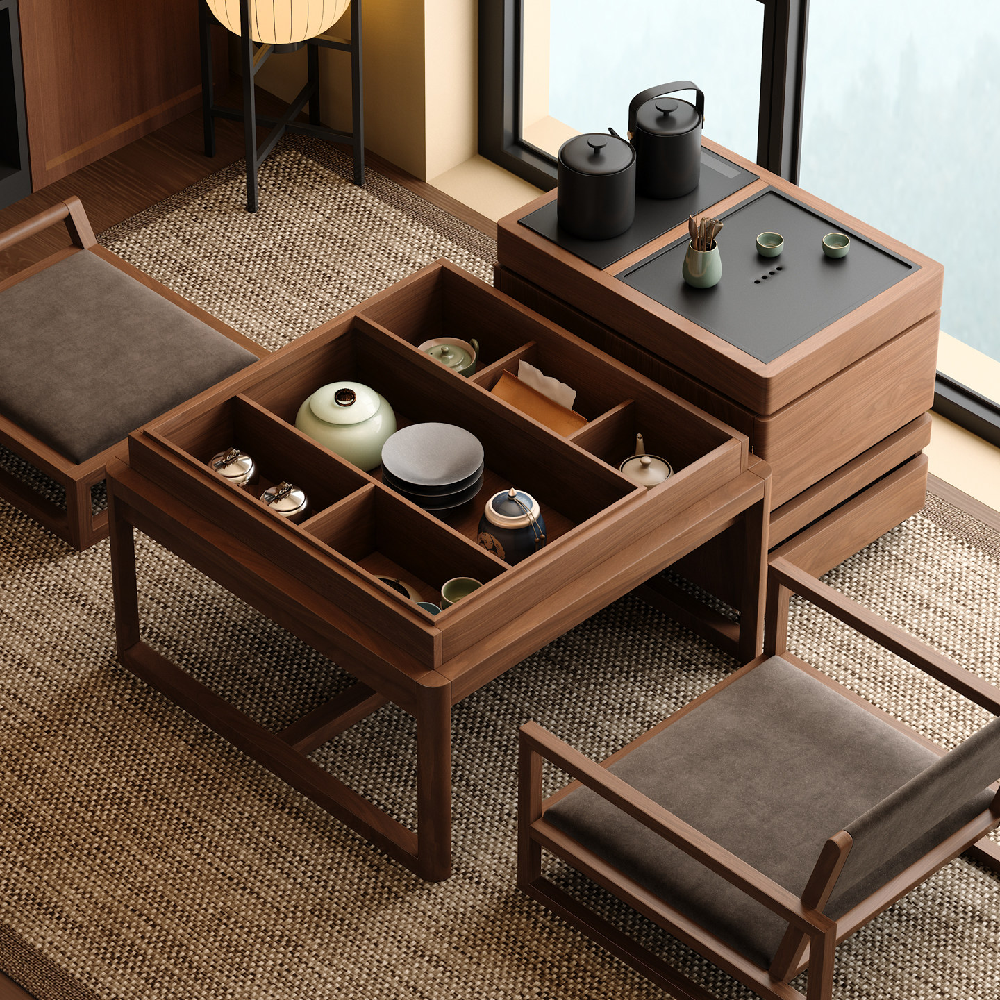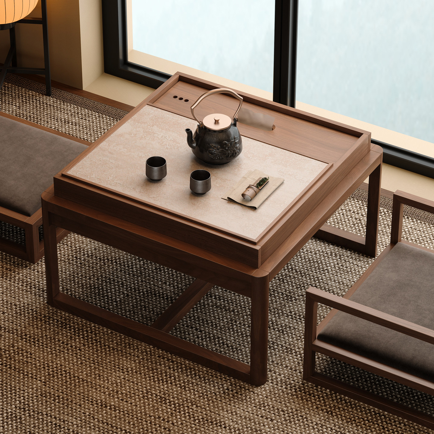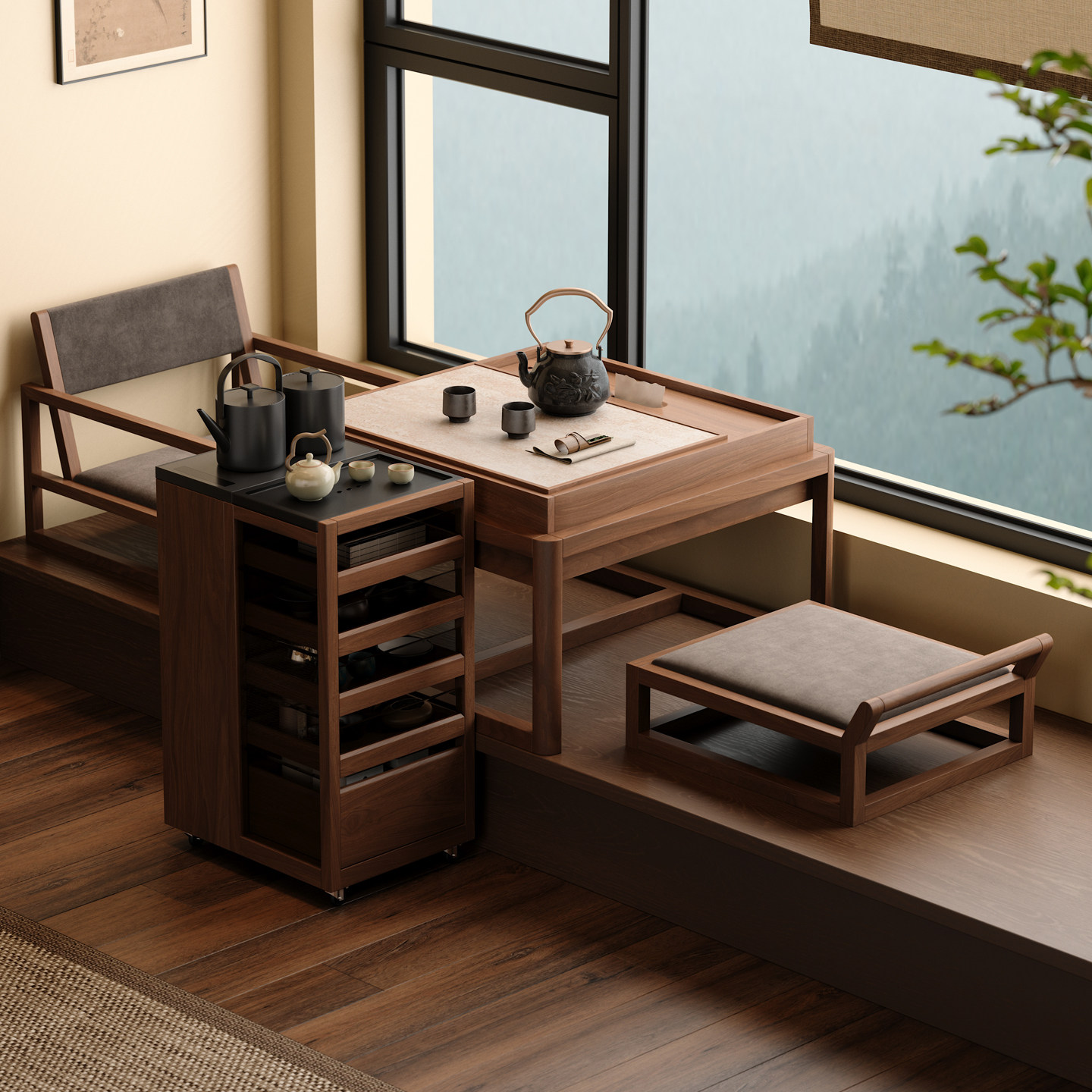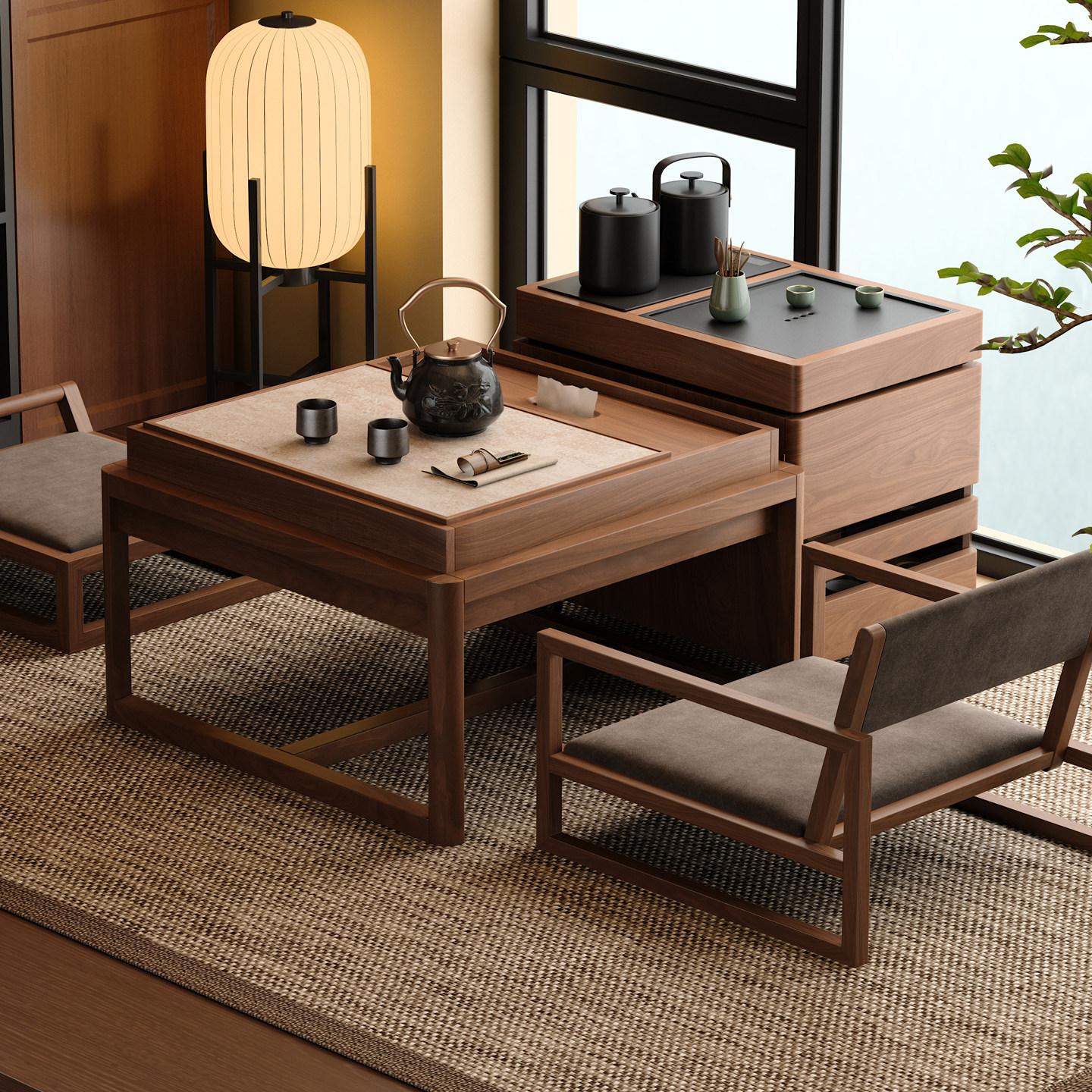 木小咖 实木茶几禅意小桌椅小户型榻榻米休闲泡茶桌椅一桌两椅方