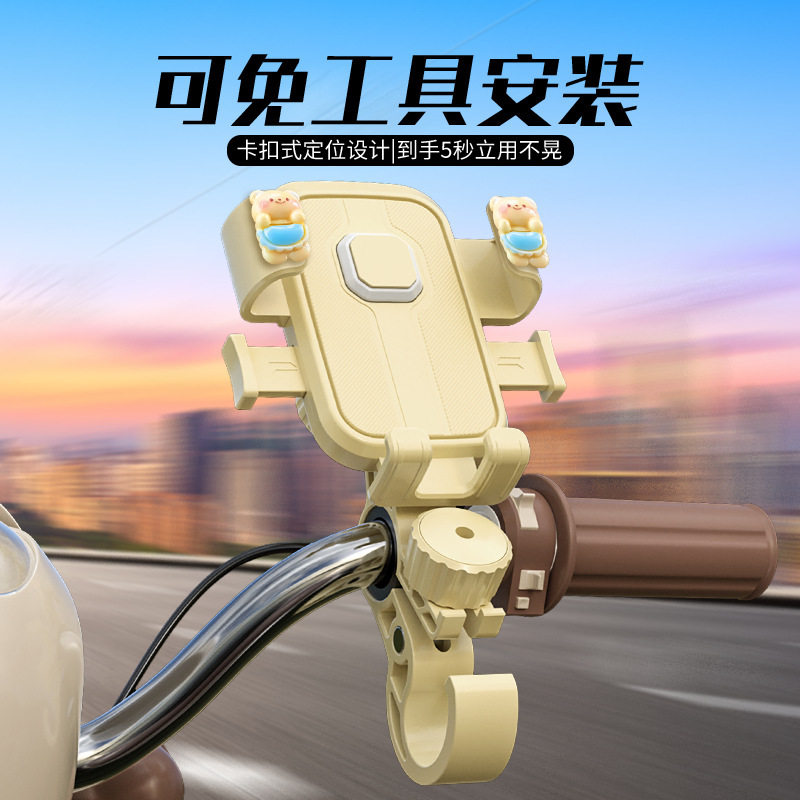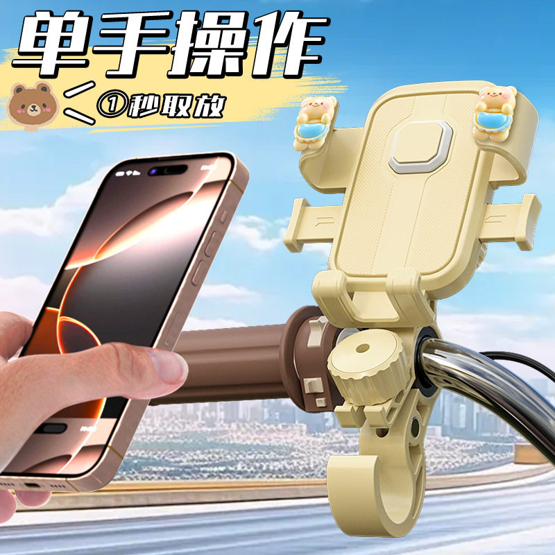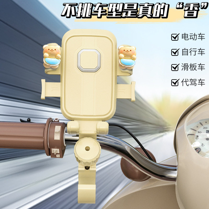 奶黄色电动车手机导航支架可爱小熊女生骑行通用带挂钩易安装