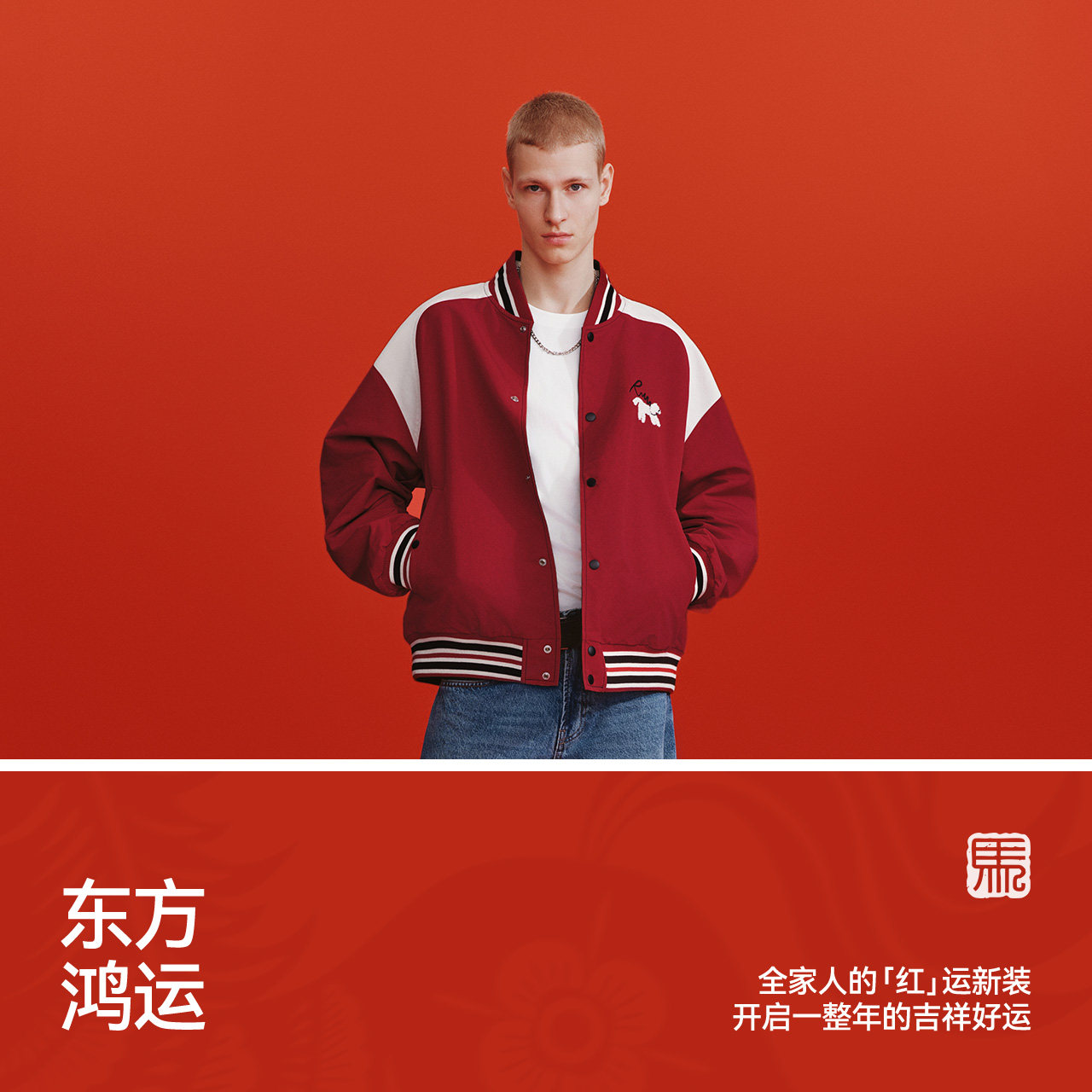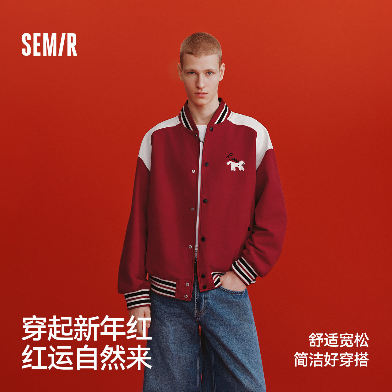 新年红 森马两面穿棒球服2026春新款防护外套美式复古宽松夹克男