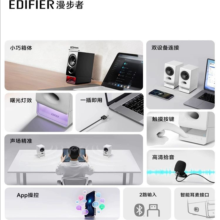 Edifier/漫步者 R20多媒体蓝牙音箱台式桌面电脑音响低音家用迷你