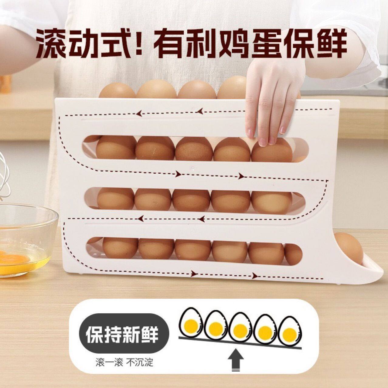滚动鸡蛋收纳盒厨房多层斜口自动滚蛋器冰箱侧门鸡蛋托专用保鲜盒