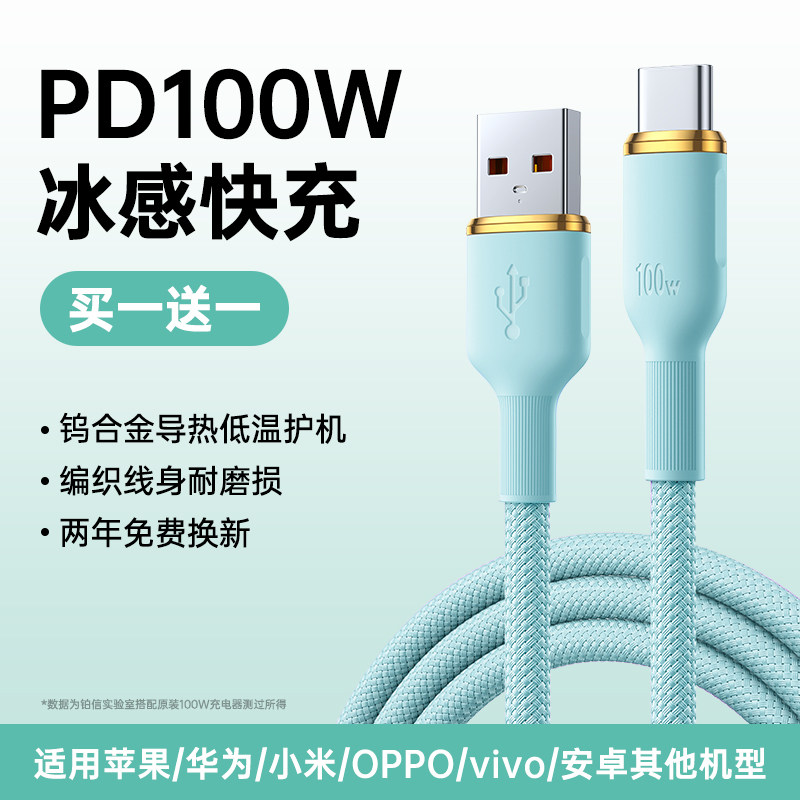 【自动断电】100W超级快充铂信适用华为充电线type-c荣耀安卓小米usb转c口手机tpc88w编织数据线车载6a66长器