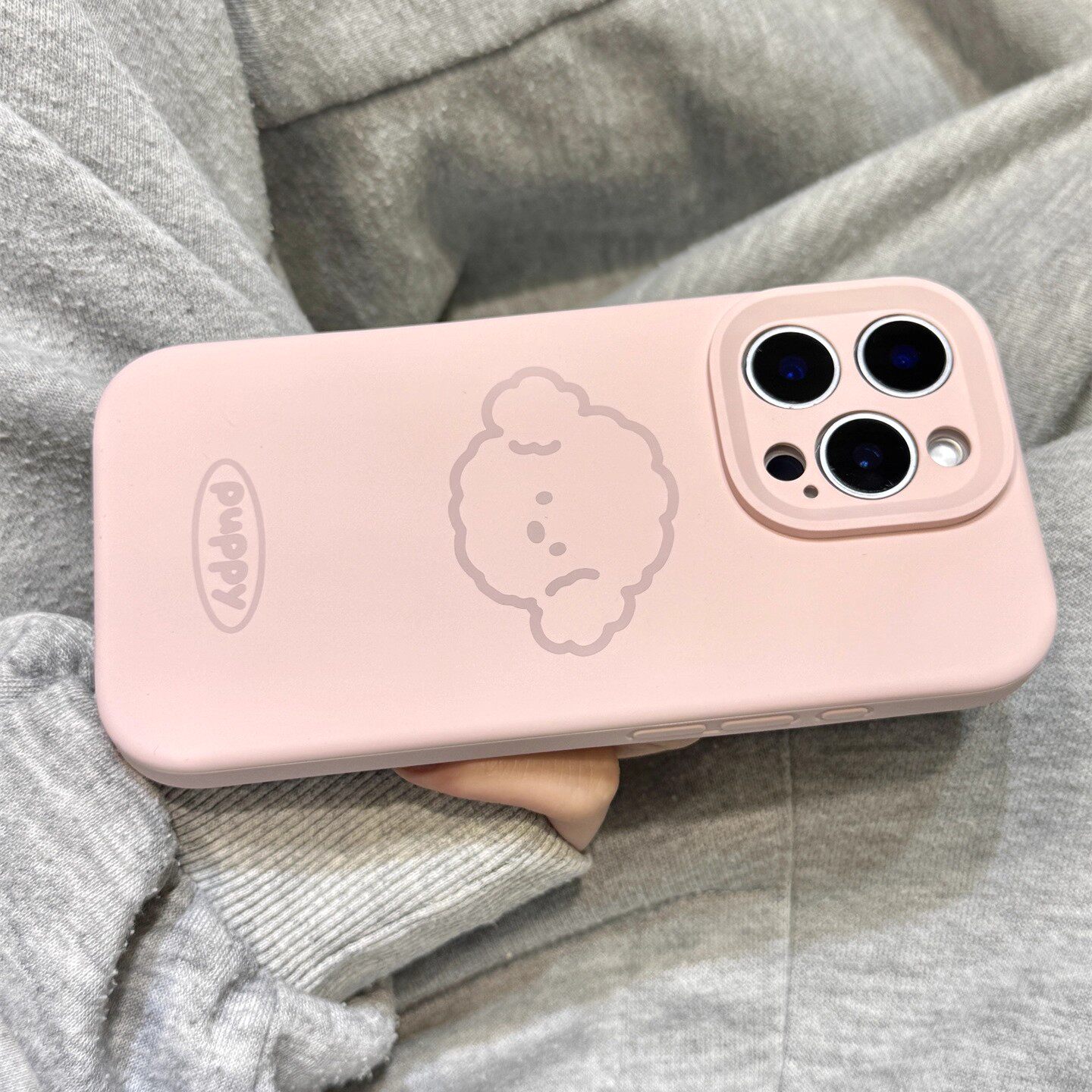 灰粉色线条狗狗头像磨砂液态硅胶适用于iphone17promax苹果16手机壳15新款14pro女13可爱12pm全包防摔保护套