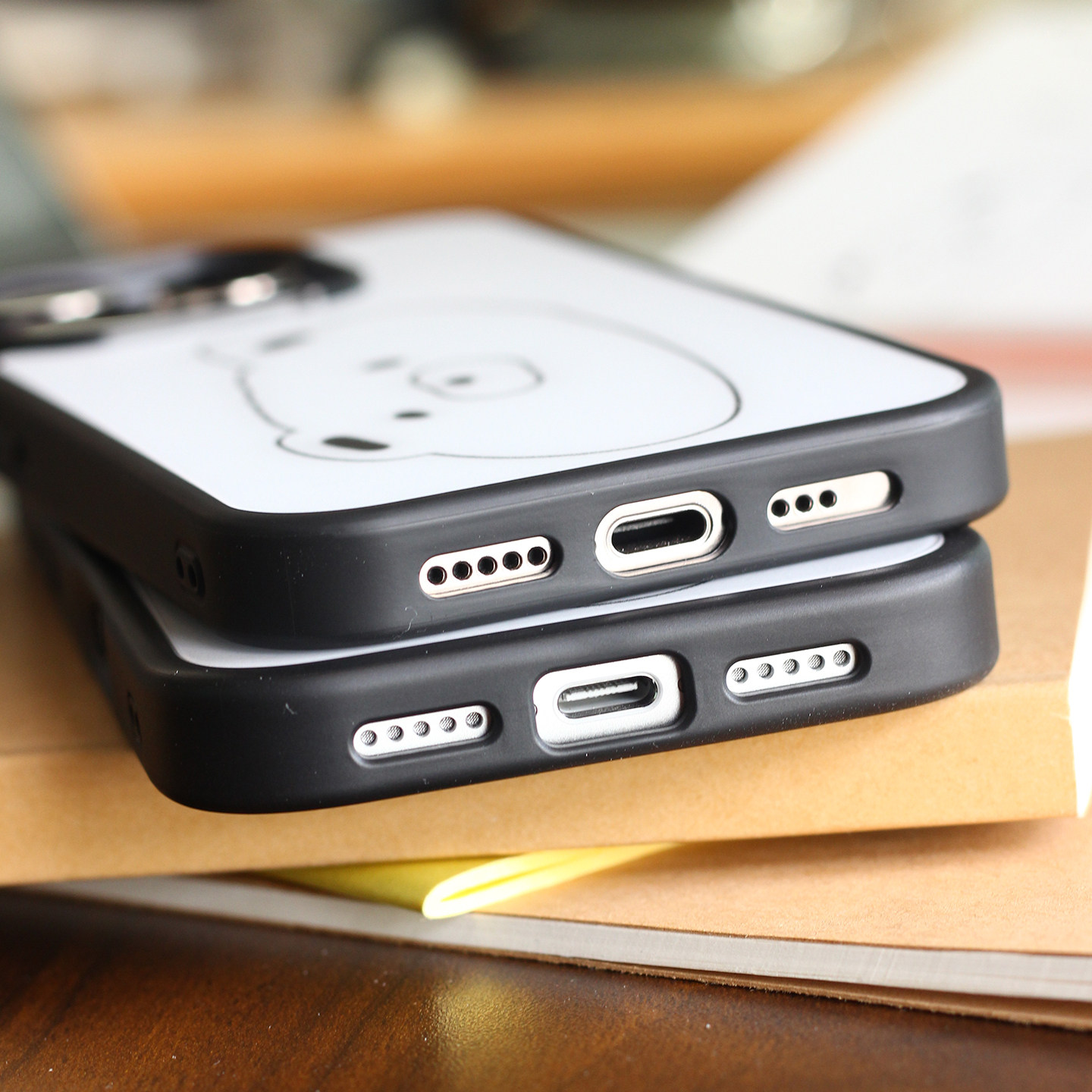 omatl原创黑白线条小熊 pc磨砂黑边磁吸手机壳 适用于苹果iphone17promax