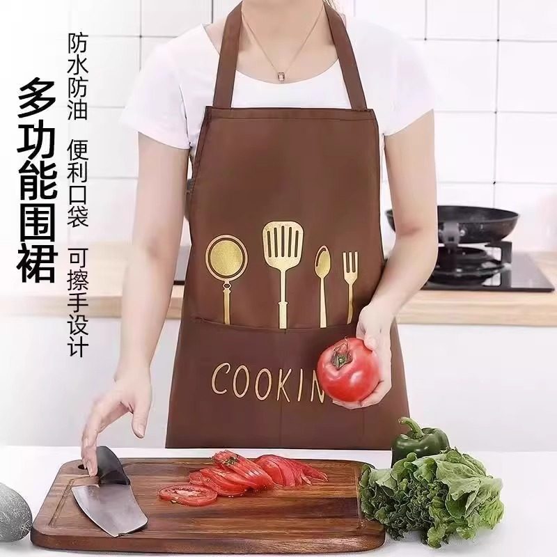 围裙厨房家用做饭防水防油女时尚新款成人工作服男女围腰冬季黑色
