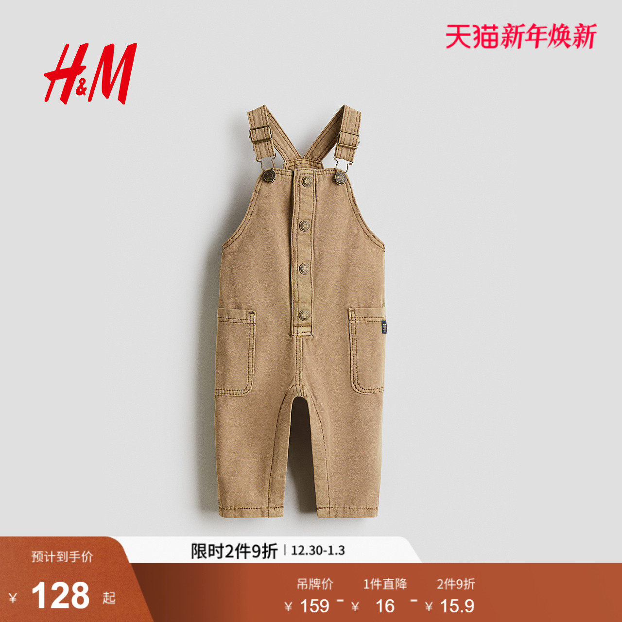 HM童装男婴裤子冬季棉质帆布背带裤1302076