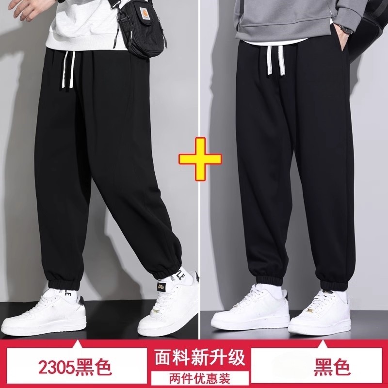准者直筒宽松运动长裤秋冬新款男士休闲跑步篮球黑色针织加绒卫裤