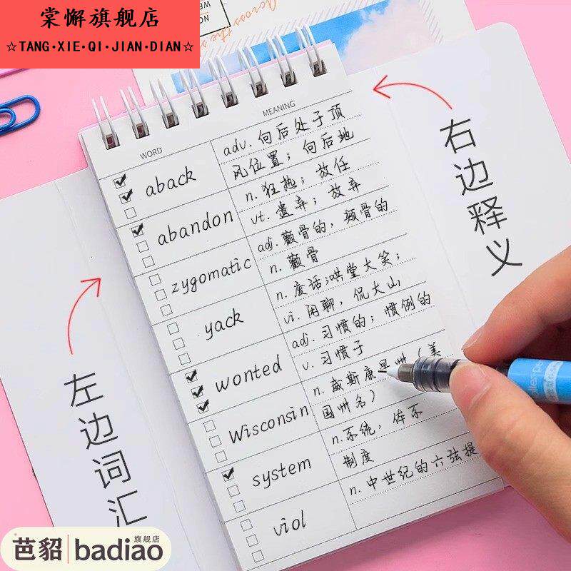 易忘英语单词背记本子带遮挡板随身便携记单词小本子创意文具口袋笔记本小号外语日语背单词环扣式记忆笔记本