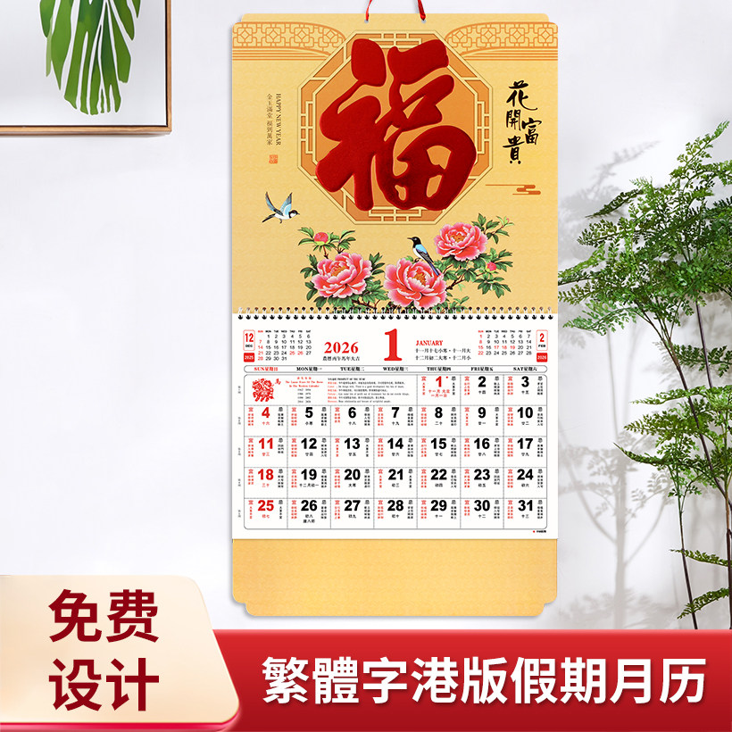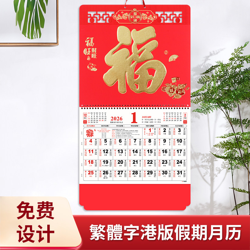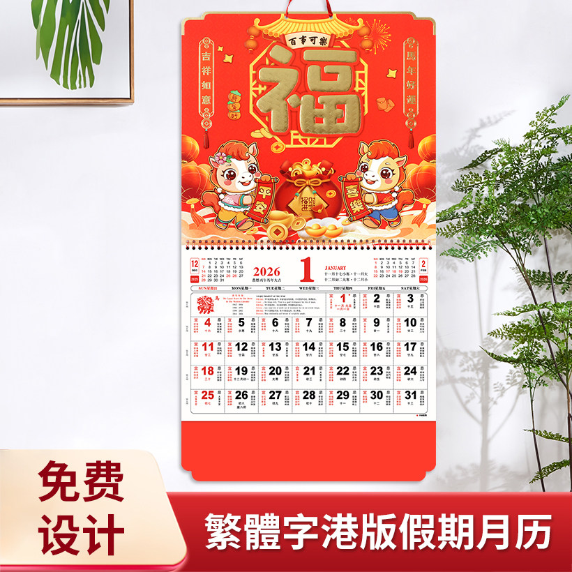 正宗香港版金箔福字挂历2026年马定制公司广告月历定做中国风福牌