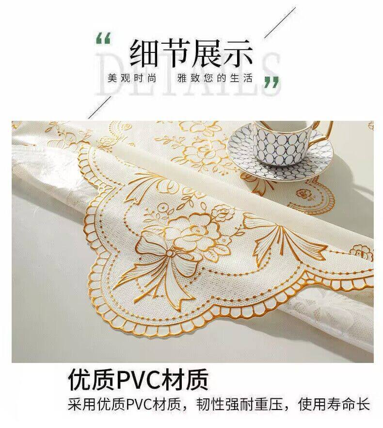桌布防水防油免洗防烫长方形餐桌布茶几垫塑料台布套客厅烫金桌布