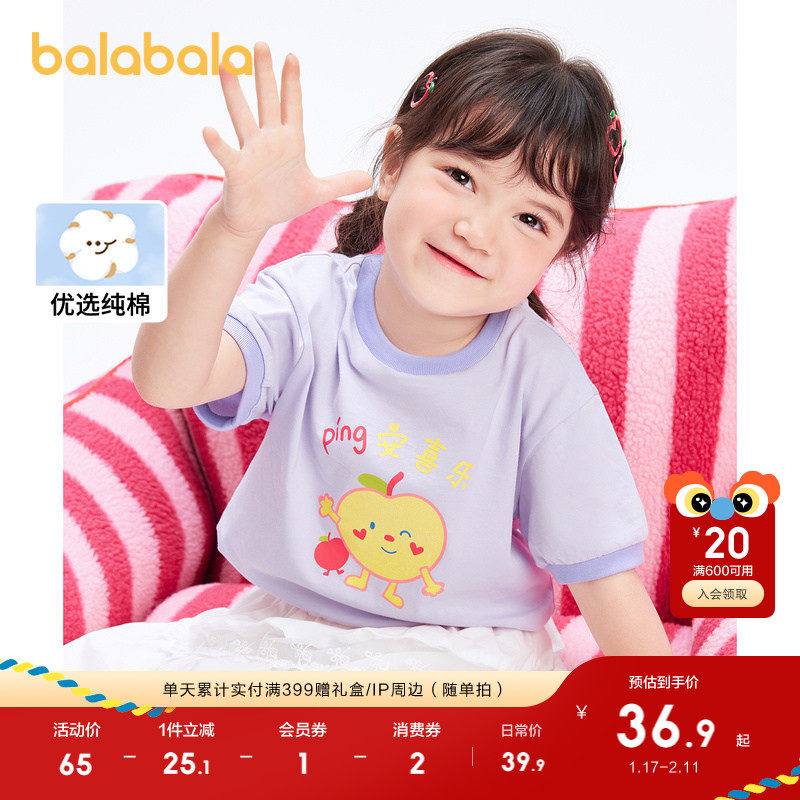 巴拉巴拉童装儿童短袖t恤女童童装宝宝打底上衣2025夏装印花纯棉