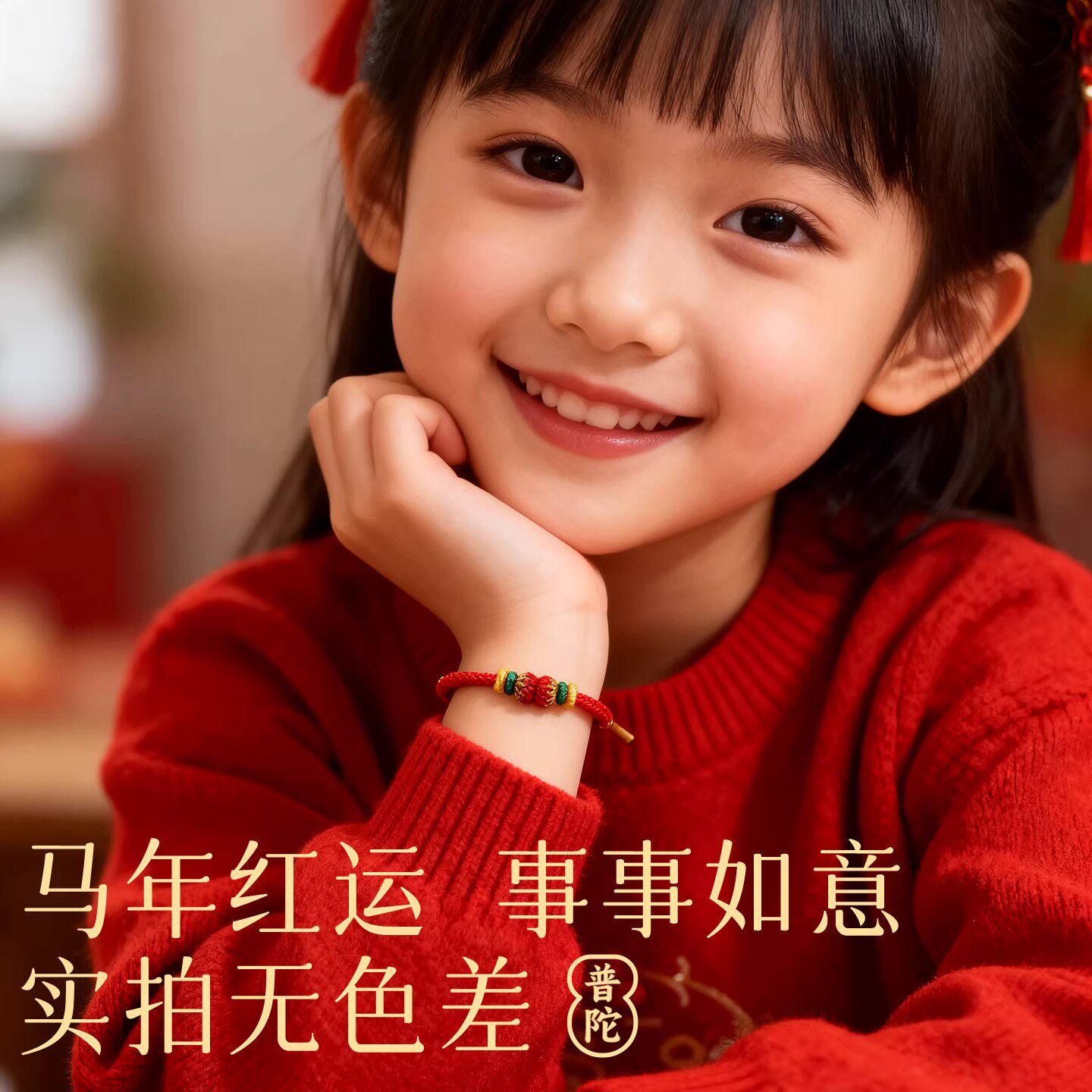 普陀山文创集2026年马年儿童款本命年红绳编织绳手链属马好运手绳