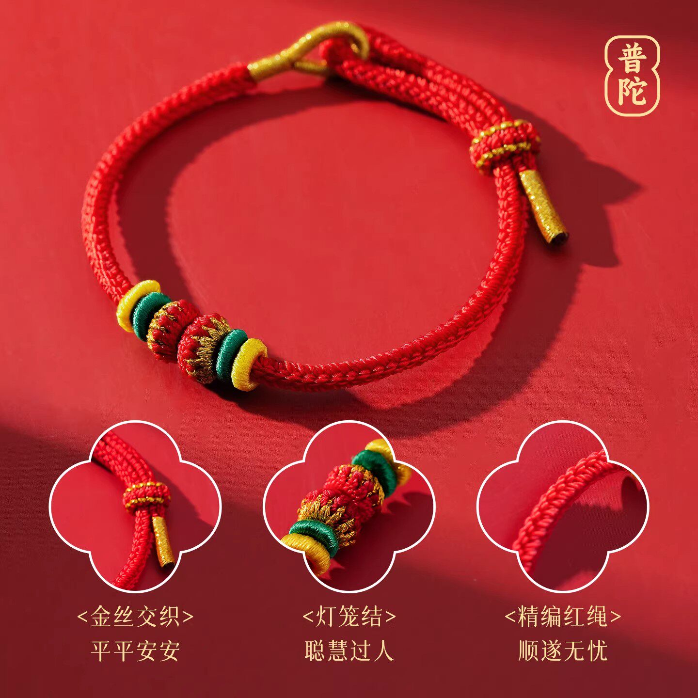 普陀山2026年犯太符手链红绳编织绳男女本命年化解手绳马年吉祥物