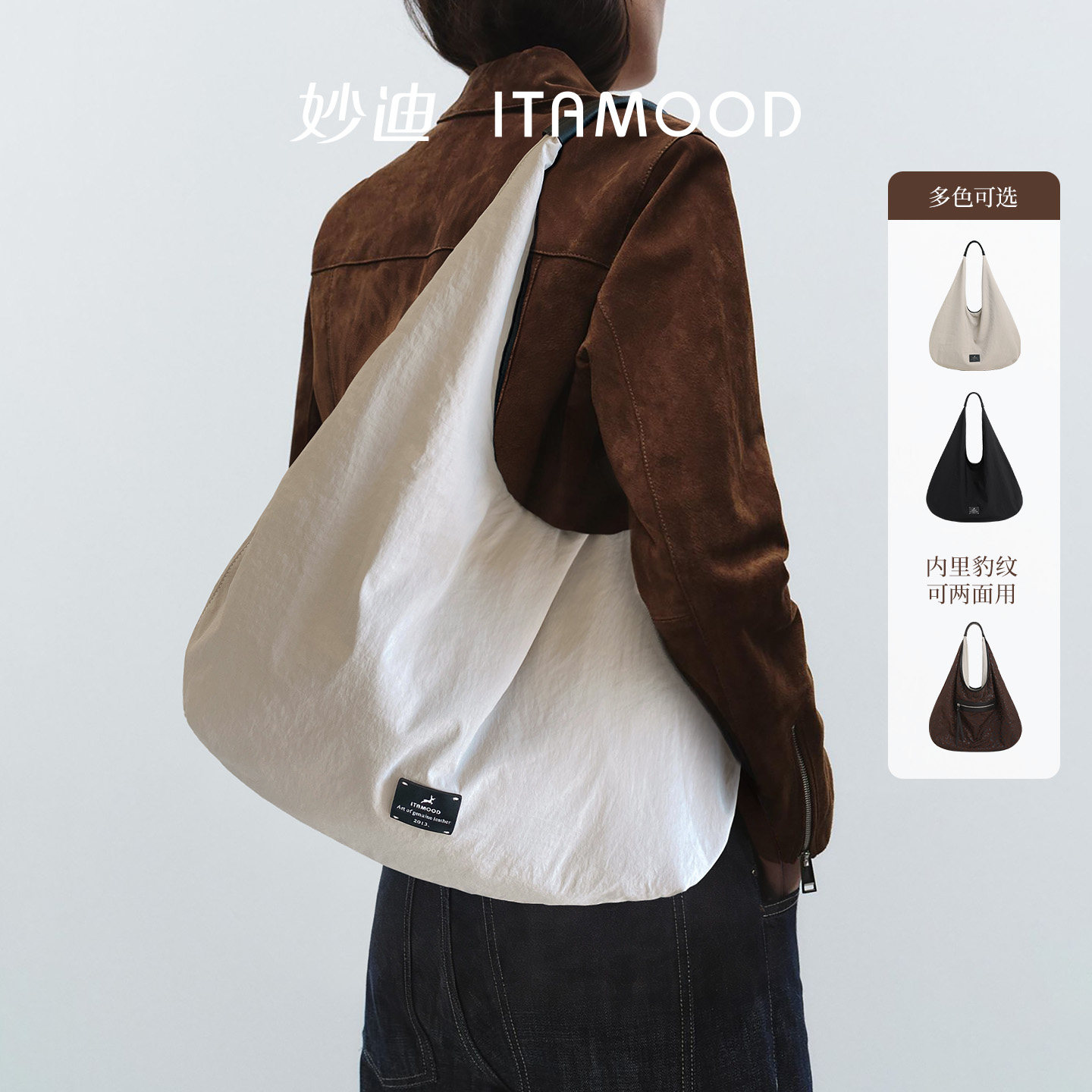 妙迪轻便豹纹大容量双面柔软托特包小众时尚三角腋下包单肩包包女
