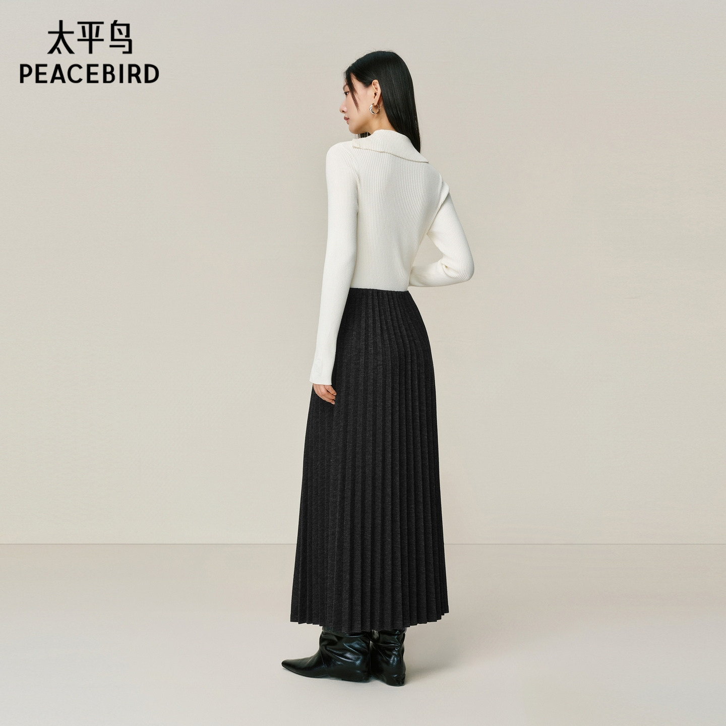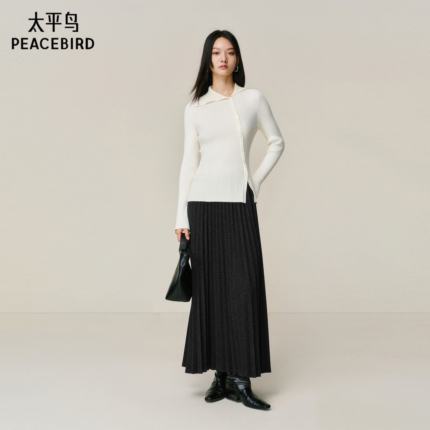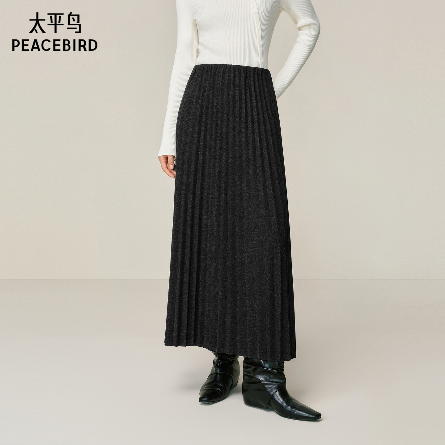 【商场同款】太平鸟灰色百褶长裙女半身裙2025年新款A1GFF4432
