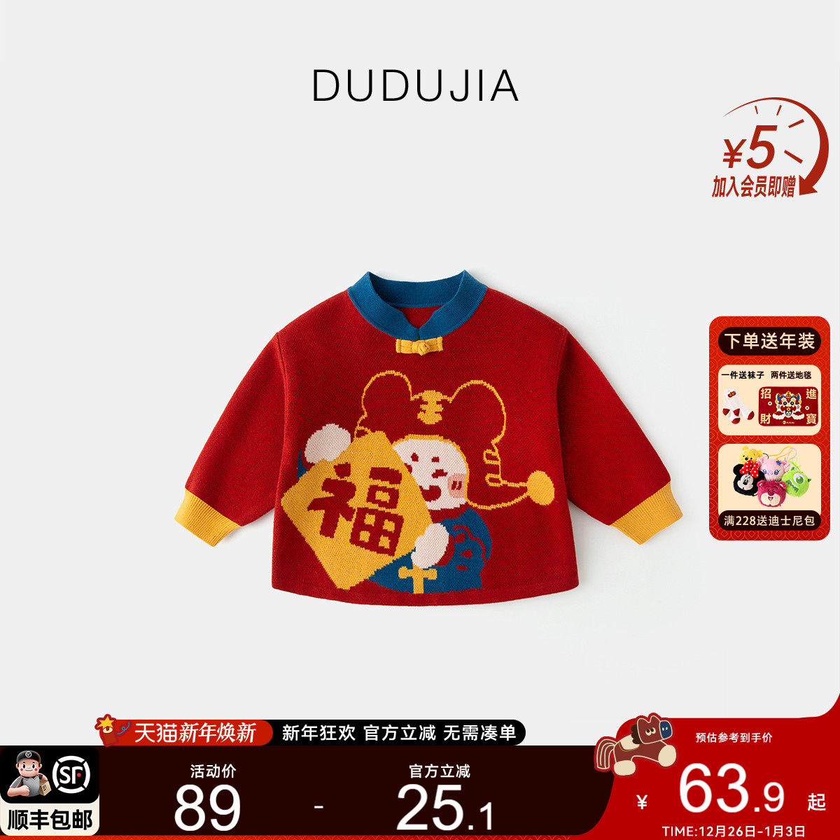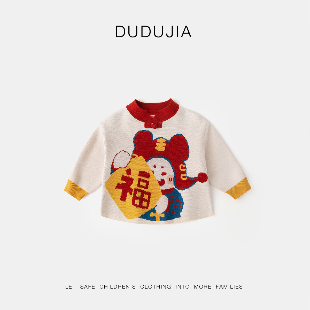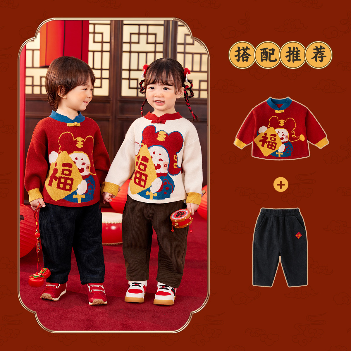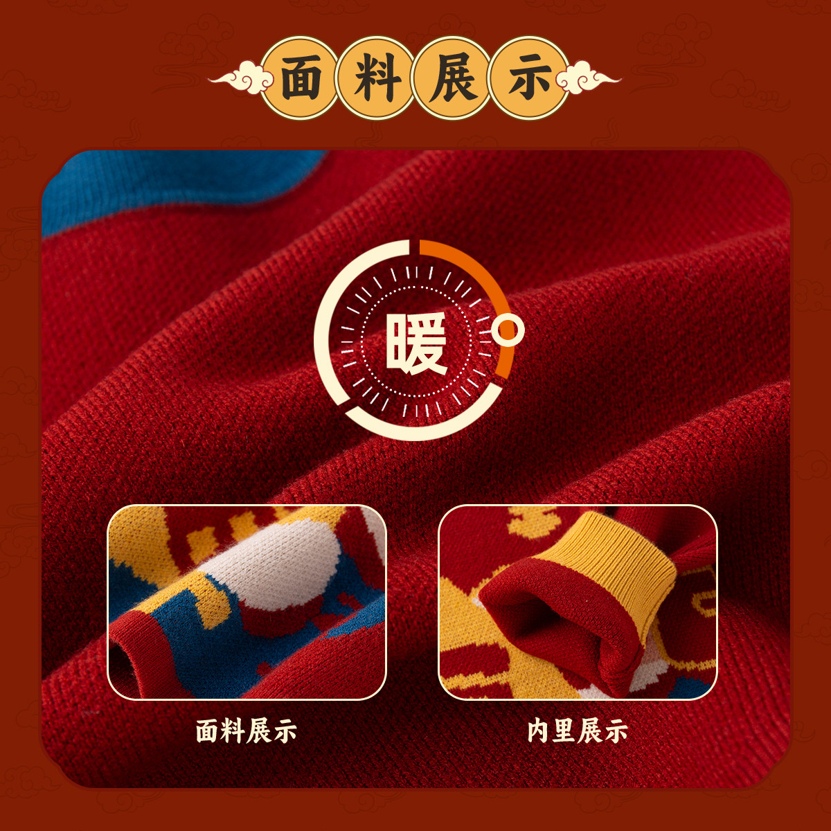 [莫代尔包芯纱]儿童拜年服冬装宝宝唐装男童加厚红色毛衣小童冬装