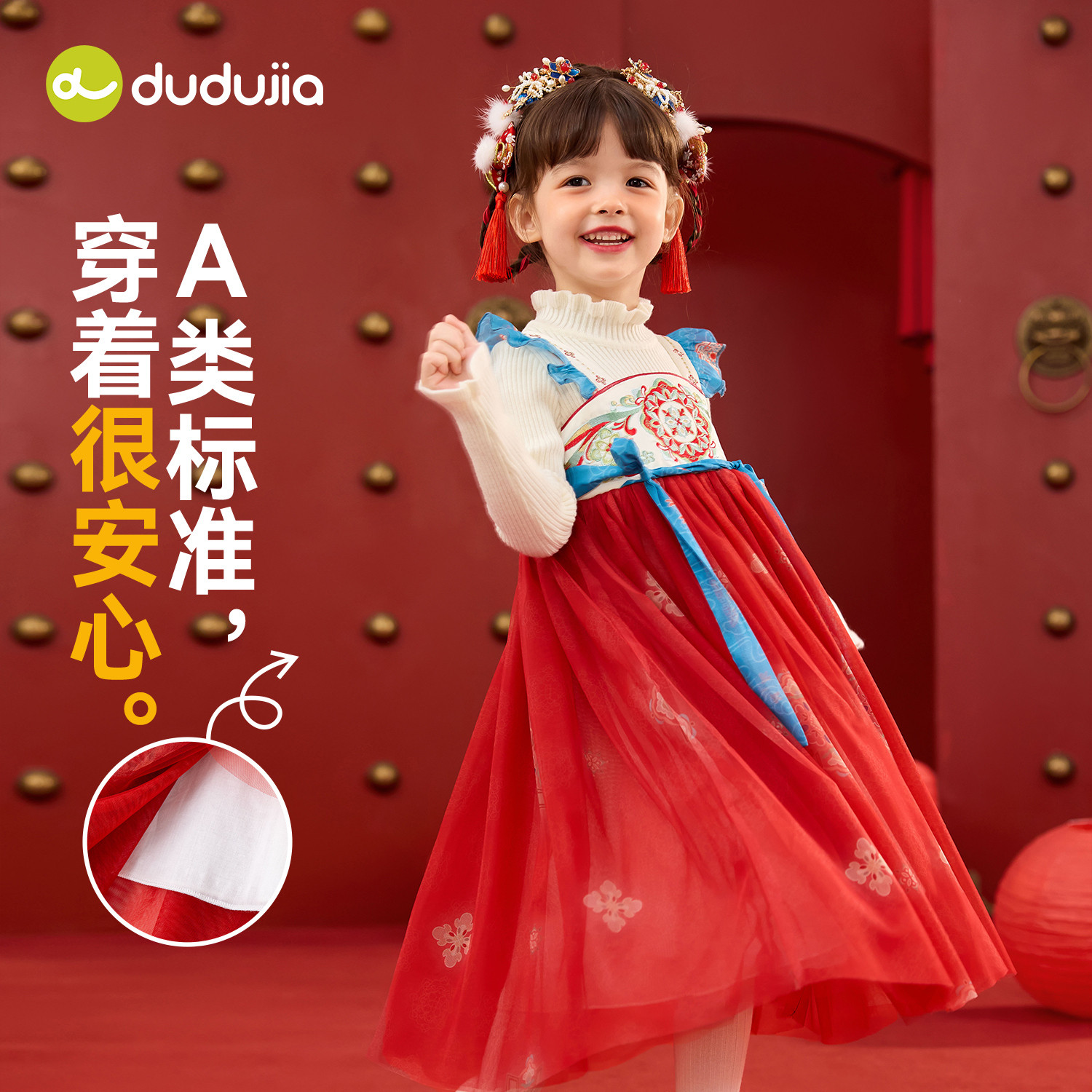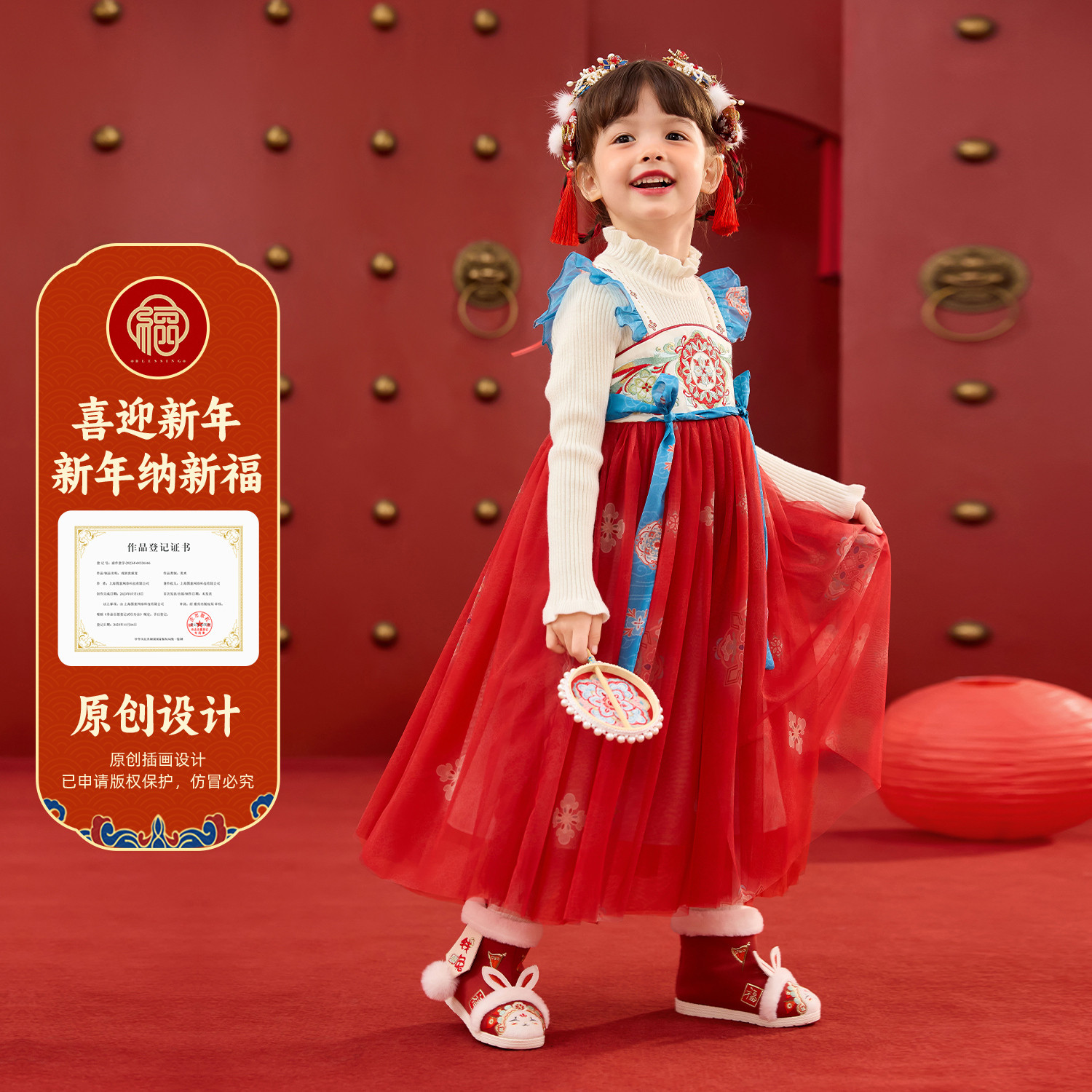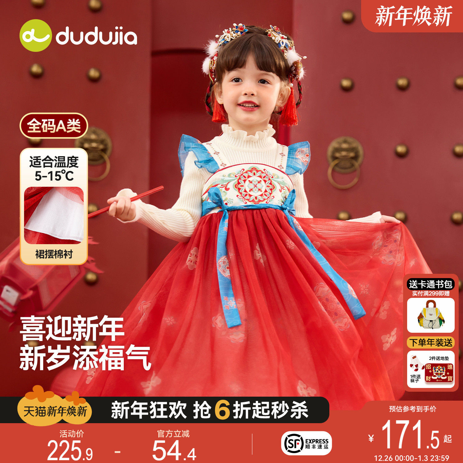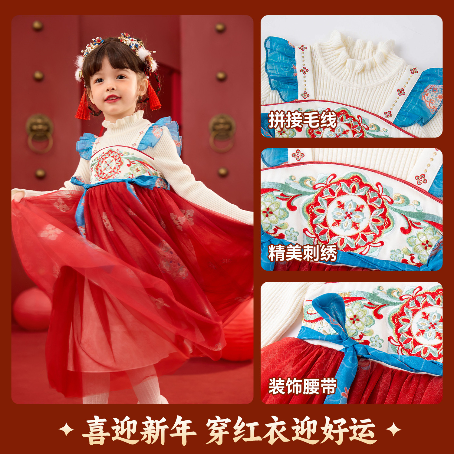 嘟嘟家女童汉服冬季加绒拜年服女孩国风唐装裙子女宝古风连衣裙冬