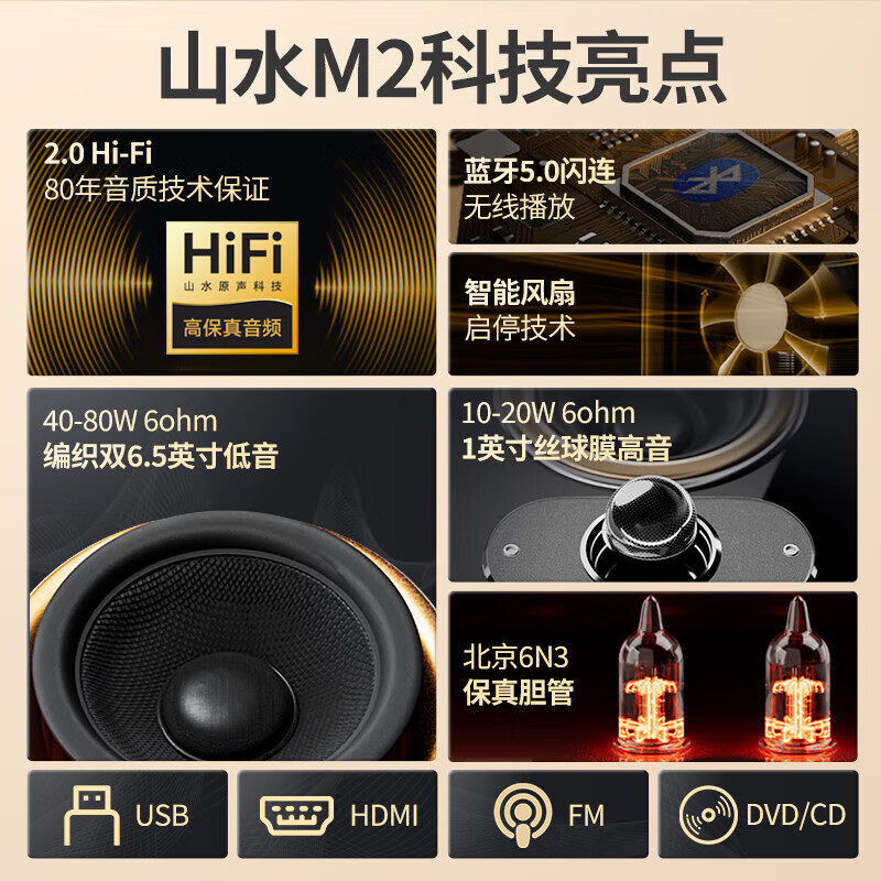 山水M2升级版胆机功放电子管前级发烧级HIFI组合音响家用音箱套装