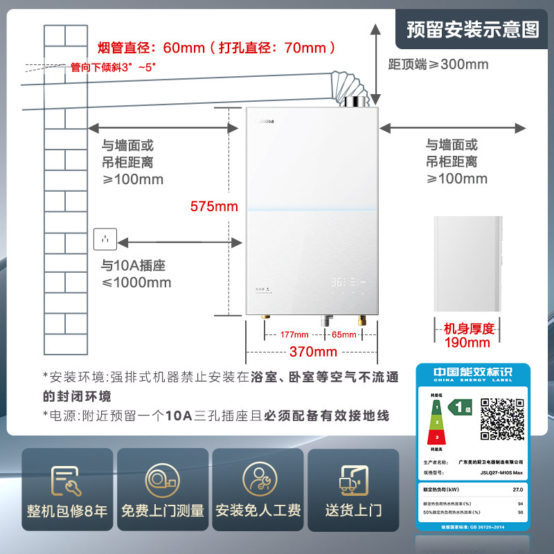 美的无冷感燃气热水器M10Smax一级家用天然气16升零冷水恒温官方