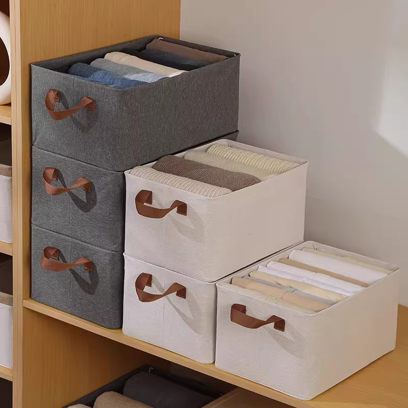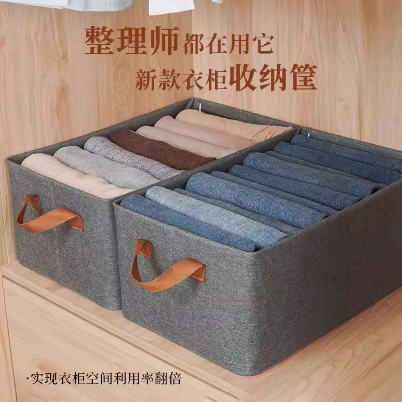 衣柜分层神器衣服收纳箱可水洗家用裤子整理盒筐布艺折叠储物箱