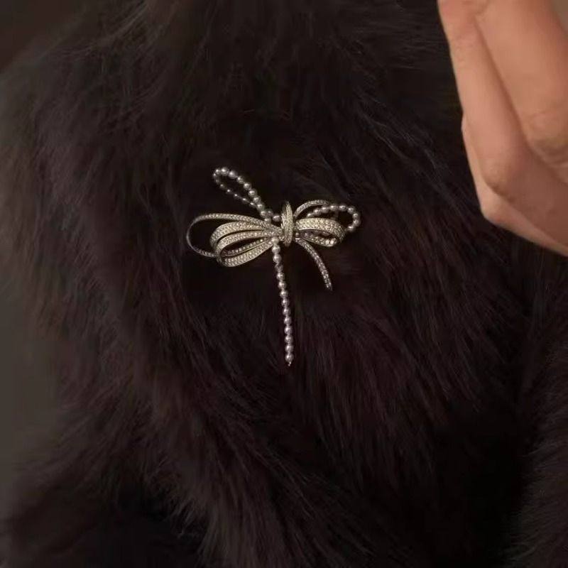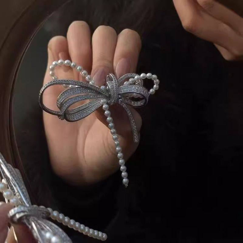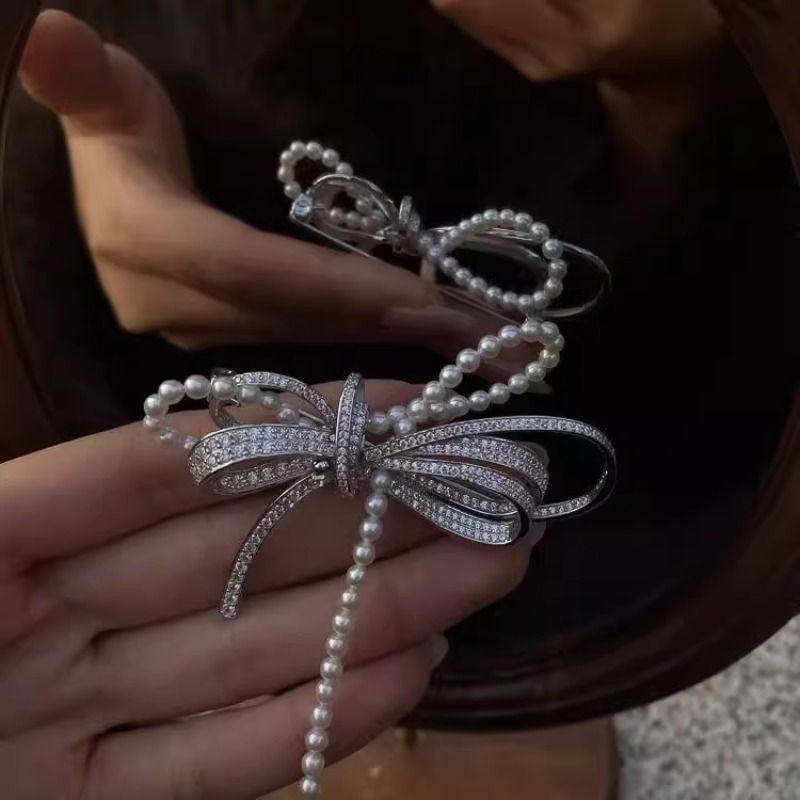 超重工!法式复古优雅珍珠闪钻蝴蝶结胸针高端大气个性衣服配饰女