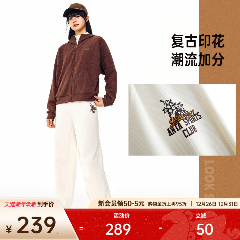 安踏阔腿裤丨美式复古休闲运动长裤女裤宽松直筒卫裤子162448304