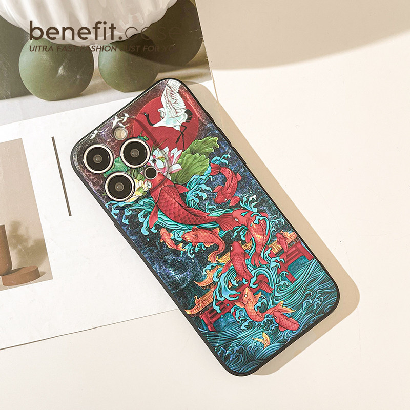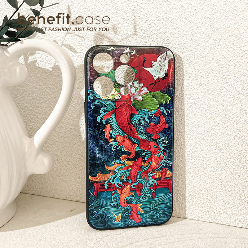 benefit新中式插画鲤鱼跃龙门17适用于iphone16promax苹果15PRO手机壳13新款14套12创意11全包xsmax硅胶xr防