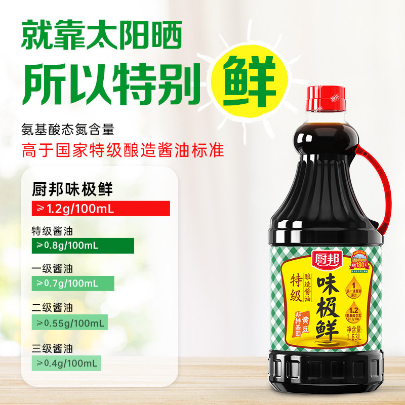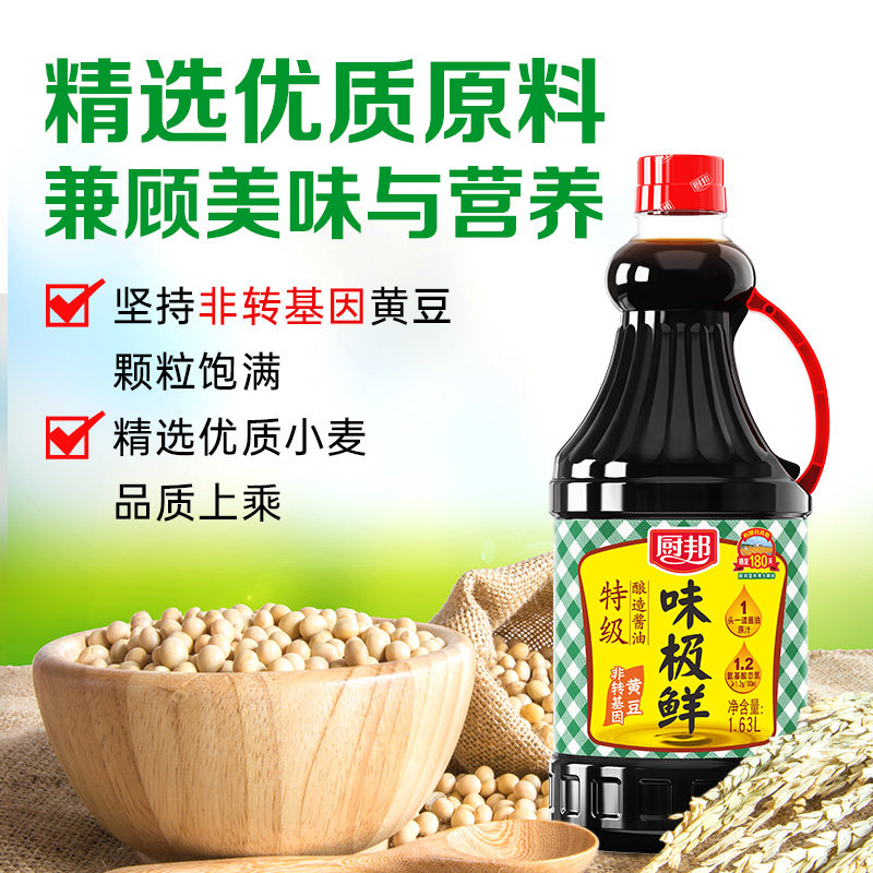 厨邦味极鲜特级酿造酱油760ml/1.63L生抽家用调味品黄豆鸡精味精
