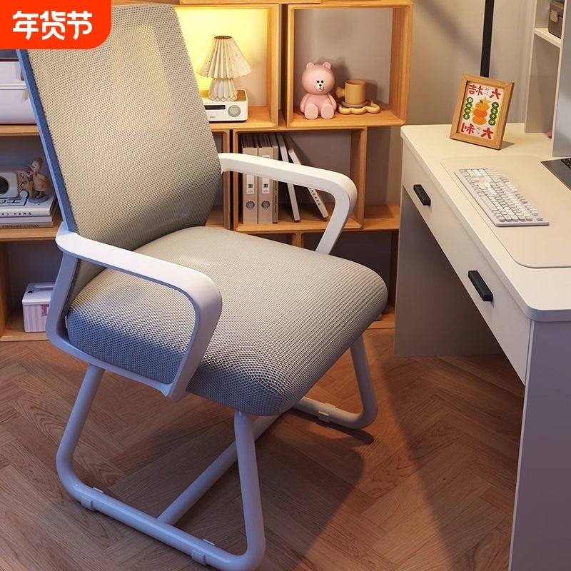 电脑椅家用办公椅护腰舒适靠背椅弓形网布椅棋牌室椅子会议会客椅