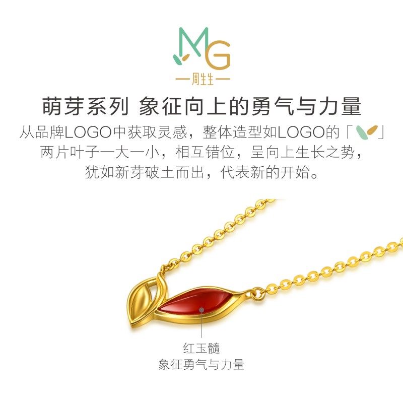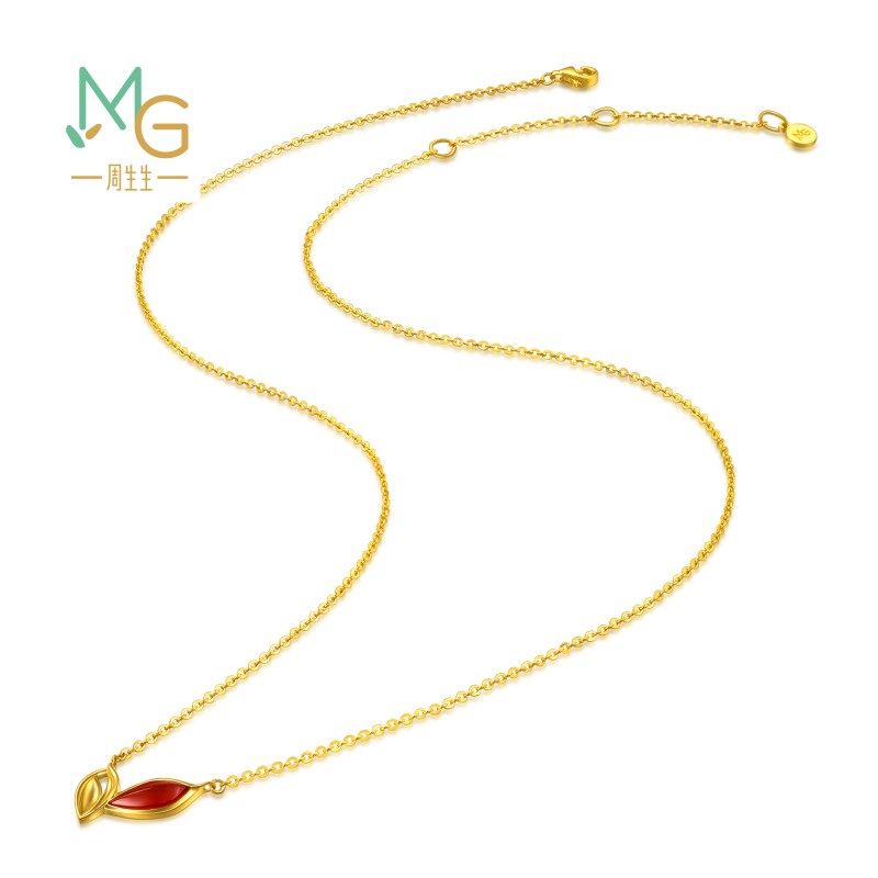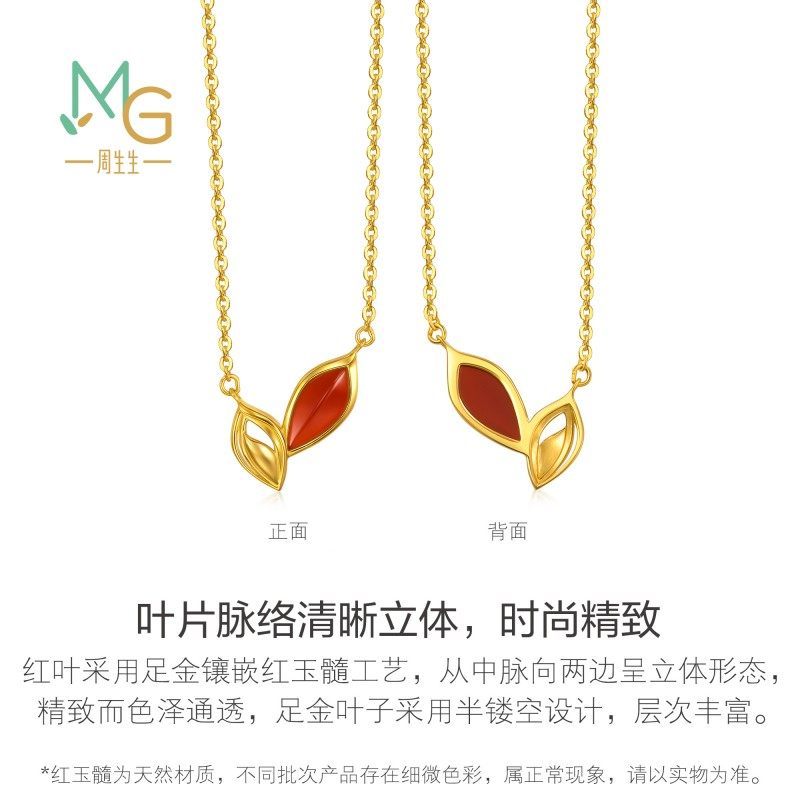 周生生萌芽系列红玉髓小红叶黄金项链足金颈链女96183N