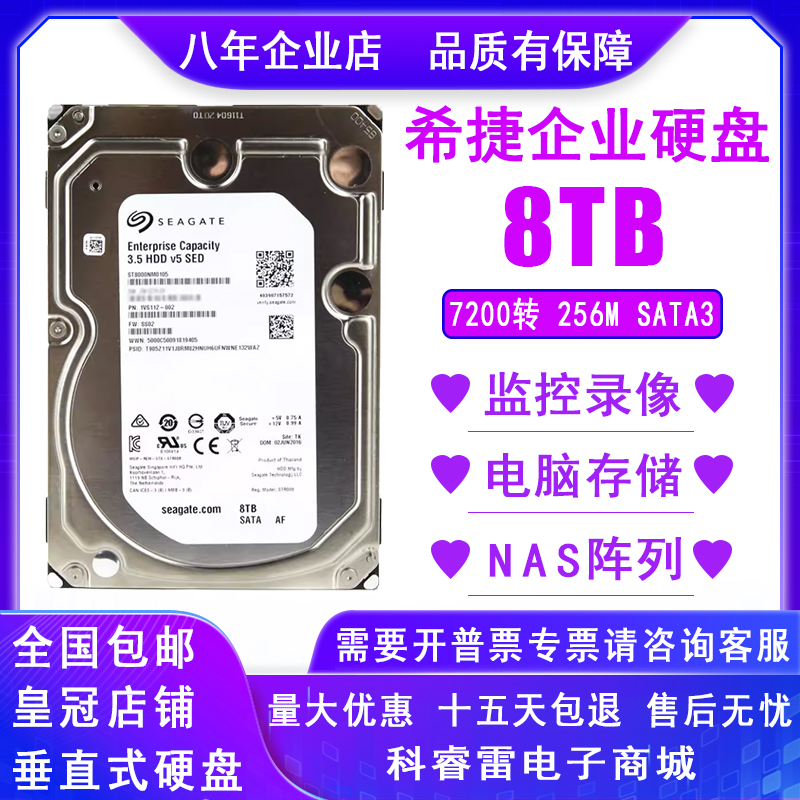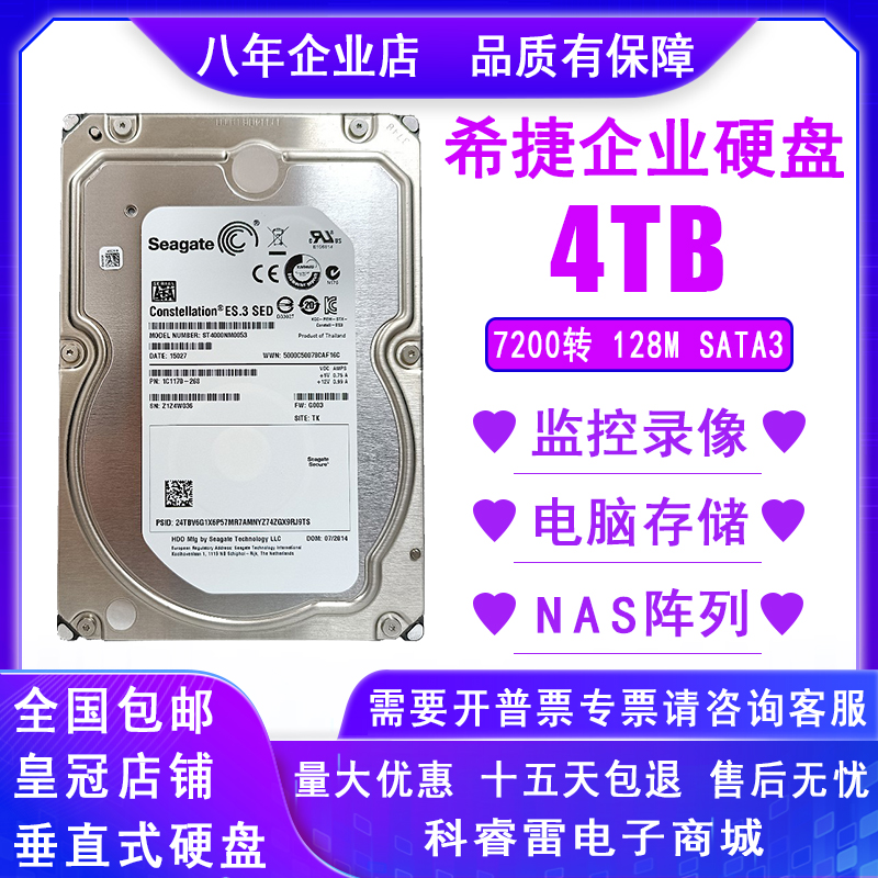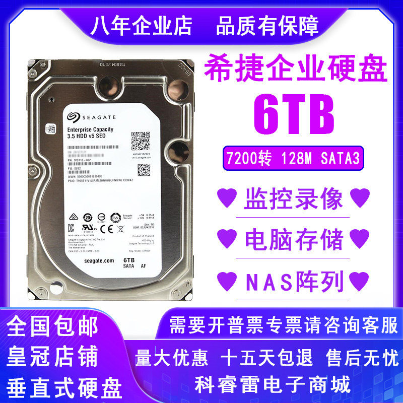希捷6T企业级硬盘8TB服务器硬盘4000G监控录像NAS存储7200转128M