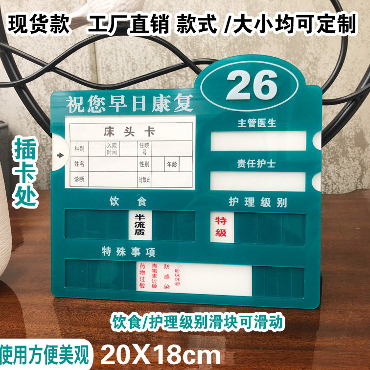 亚克力病房床头牌插卡医院医用病床护理级别指示标识老人院警示牌