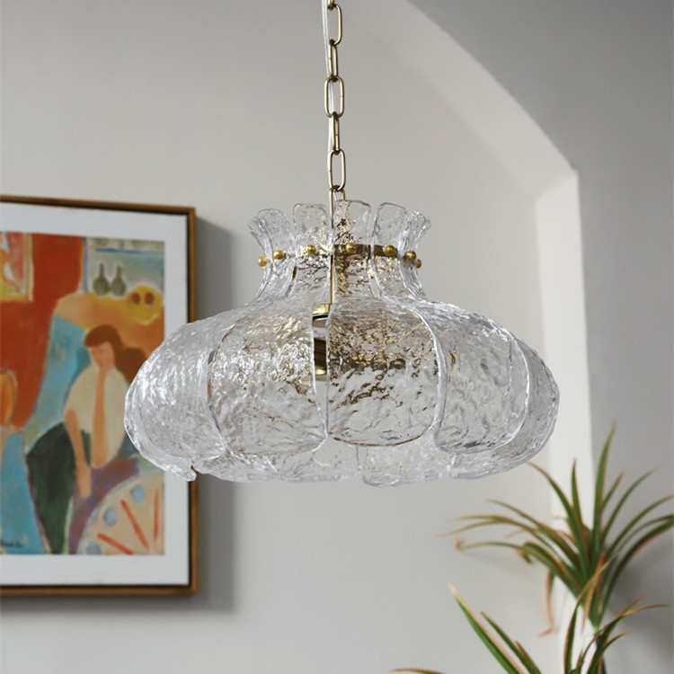 复古餐厅吊灯玻璃轻奢灯手工冰融书房后现代卧室全铜吧台餐厅灯