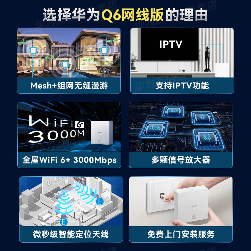 【免费上门安装】华为H6路由器千兆端口ap面板家用全屋无线wifi6大户型poe电力线Q6子母路由器mesh覆盖别墅ac