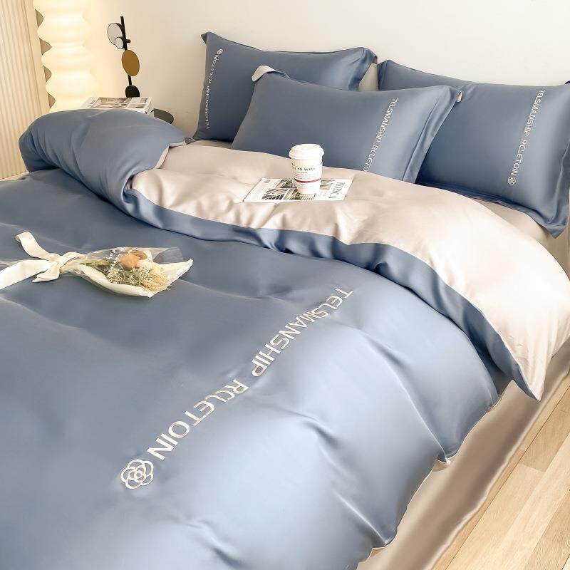 水洗冰丝四件套轻奢凉感丝被套床单宿舍4件套床上用品厂家