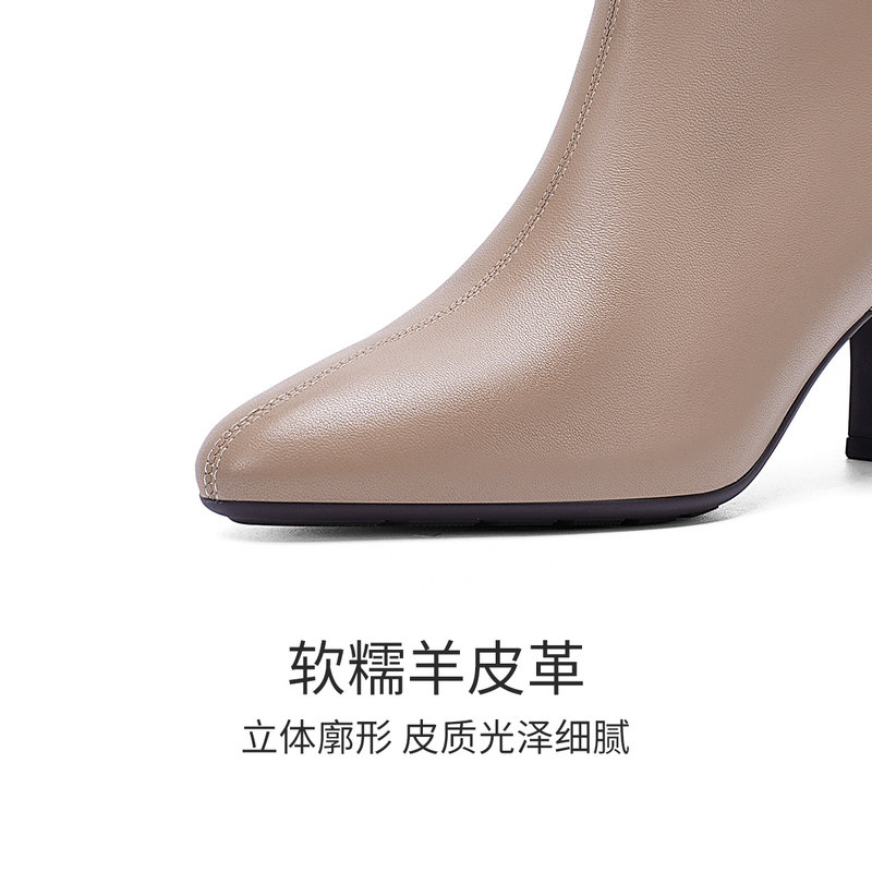 尖头高跟短靴女细跟拉链黑色靴子气质秋冬皮靴百搭2025新款瘦瘦靴