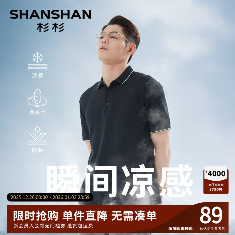 杉杉凉感短袖t恤男款父亲爸爸上衣2025夏季新款桑蚕丝男士polo衫